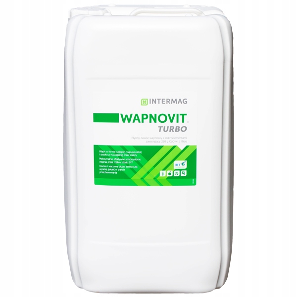 - WAPNOVIT 20л КАЛЬЦИЕВОЕ УДОБРЕНИЕ С МИКРОЭЛЕМЕНТАМИ И МАГНИЕМ ДЛЯ ПРАВИЛЬНОГО РОСТА И РАЗВИТИЯ, А ТАКЖЕ КАЧЕСТВА И КОЛИЧЕСТВА УРОЖАЯ Современное жидкое кальциевое удобрение (260 г СаО в 1 литре), обогащенное магнием и микроэлементами. Магний (Mg), бор (В), медь (Cu), молибден (Mo) и цинк (Zn) дополнительно положительно влияют на количество и качество урожая. Рекомендуется для внекорневой подкормки, а также для использования при орошении (фертигации) культур с повышенной потребностью в кальции. Внекорневая подкормка кальцием необходима, особенно у садовых культур, в связи с ограниченным движением и транспортом ионов Са2+ в растениях. Этот метод обеспечения растений кальцием предотвращает возникновение таких физиологических заболеваний, как сухая верхушечная гниль томатов, горечь яблок и «ожог кончиков» крестоцветных овощей. Технология INT, использованная в удобрении, делает препарат исключительно эффективным – кальций очень быстро усваивается растением и перемещается ко всем органам, обеспечивая их правильный рост и развитие. Wapnovit Turbo является важным элементом технологии выращивания садовых растений для свежего рынка и для переработки. При использовании в сельскохозяйственных культурах, особенно в корнеплодах, повышает содержание запасных веществ, например сахара, в сахарной свекле. Состав удобрения Wapnovit Turbo: Ингредиенты г/л % (м/м) Общий азот (N) 130 8,5 Нитратный азот (N) (NO3) 120 8,0 Оксид кальция (CaO) 260 17,0 Оксид магния (MgO) 10 0,7 Бор (B) ) 0,75 0,05 Медь (Cu), хелатированная ЭДТА 0,3 0,020 Молибден (Mo) 0,015 0,001 Цинк (Zn), хелатированный ЭДТА 0,3 0,020 Дозировка – как применять Wapnovit Turbo? 2–6 л/га,