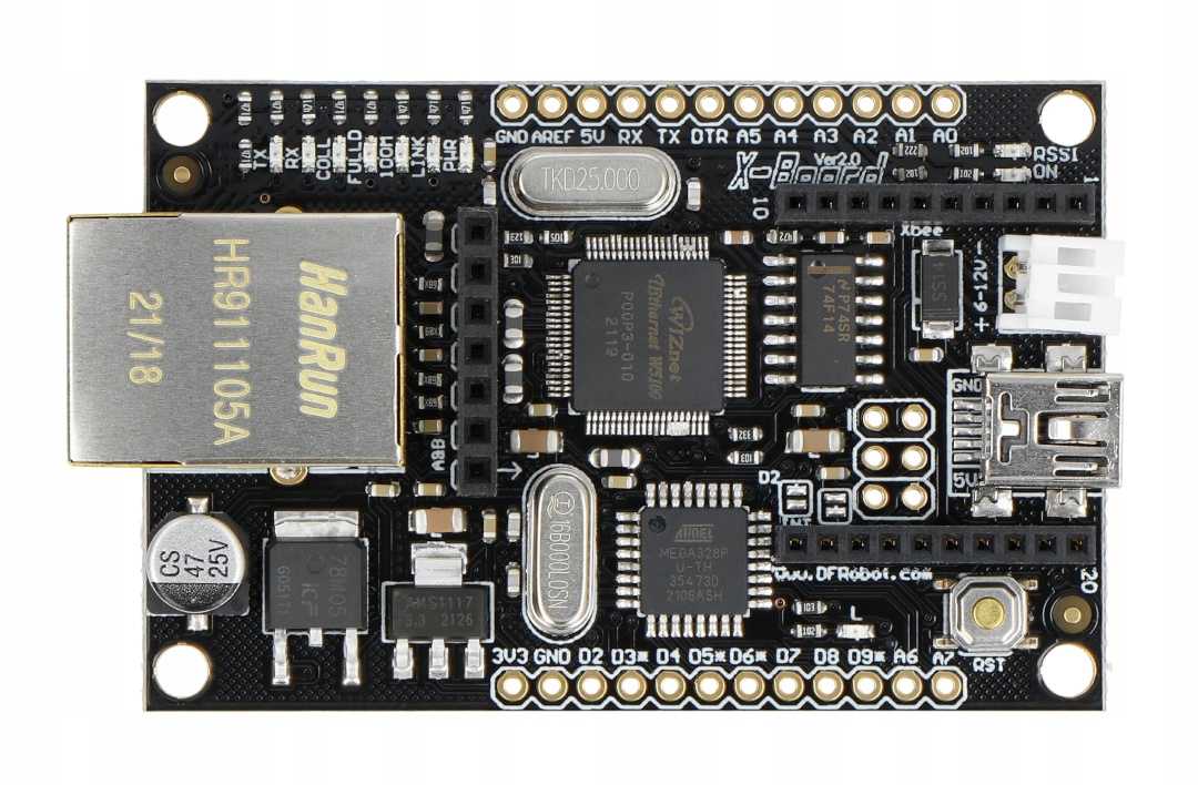xboard - это плитка, совместимая с Arduino, оснащенным портом Ethernet, гнетом для модулей Xbee и микроконтроллером Atmega328, известным из версии UNO. Устройство может быть запрограммировано через среду Arduino IDE с использованием преобразователя FTDI