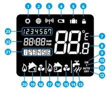 - Управляет источником тепла/холода или насоса циркуляции и циркуляционной насос горячей воды. Беспроводным образом с контролируемыми устройствами.