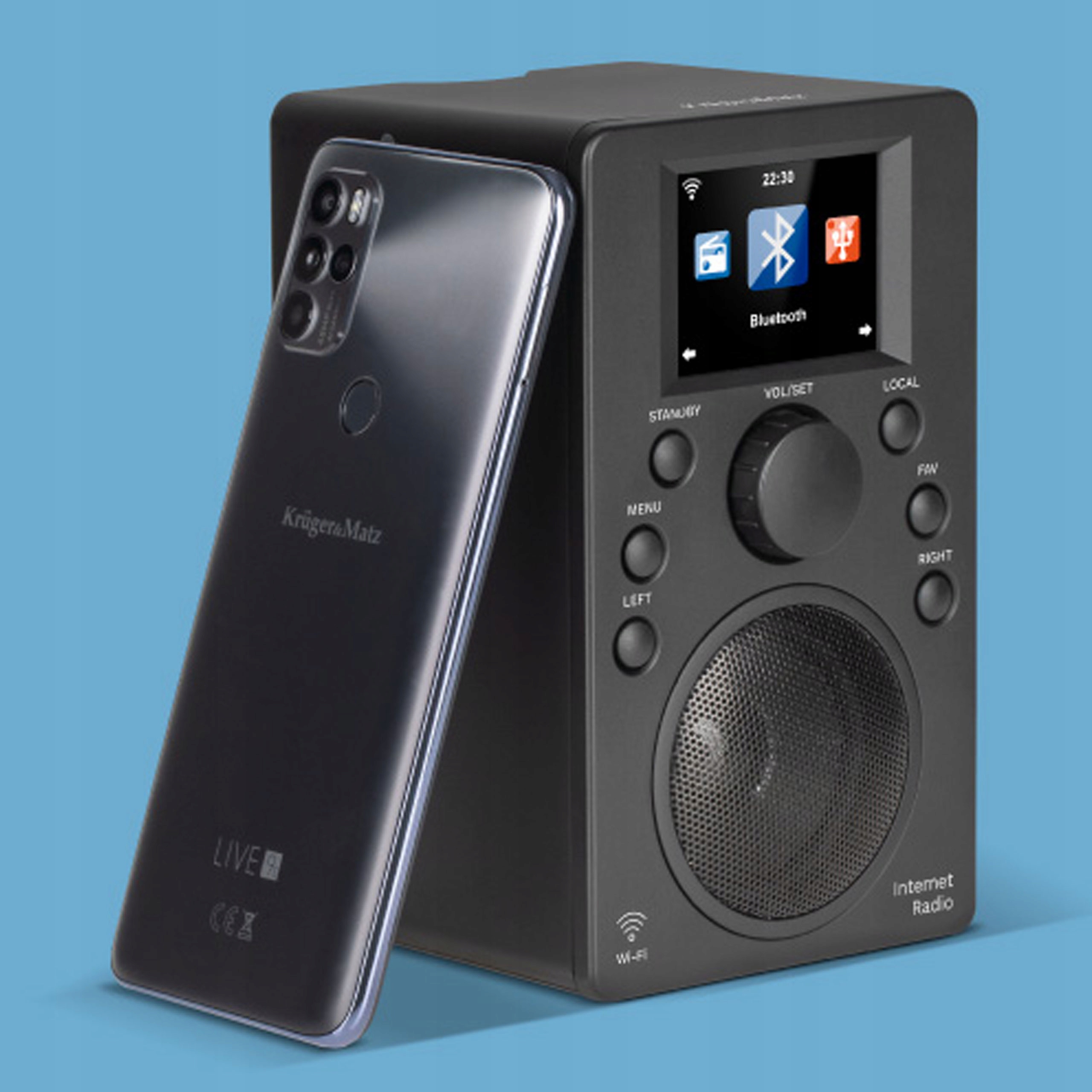 Любите ли вы иногда путешествовать по другим частям мира, слушая музыку разных жанров? Или, может быть, у вас есть любимая местная радиостанция, которая сопровождает вас в течение дня? Просто подключите интернет-радио Kruger&Matz KM 818 к домашней сети Wi-Fi, и среди 25 000 станций вы обязательно найдете то, что вам нужно.