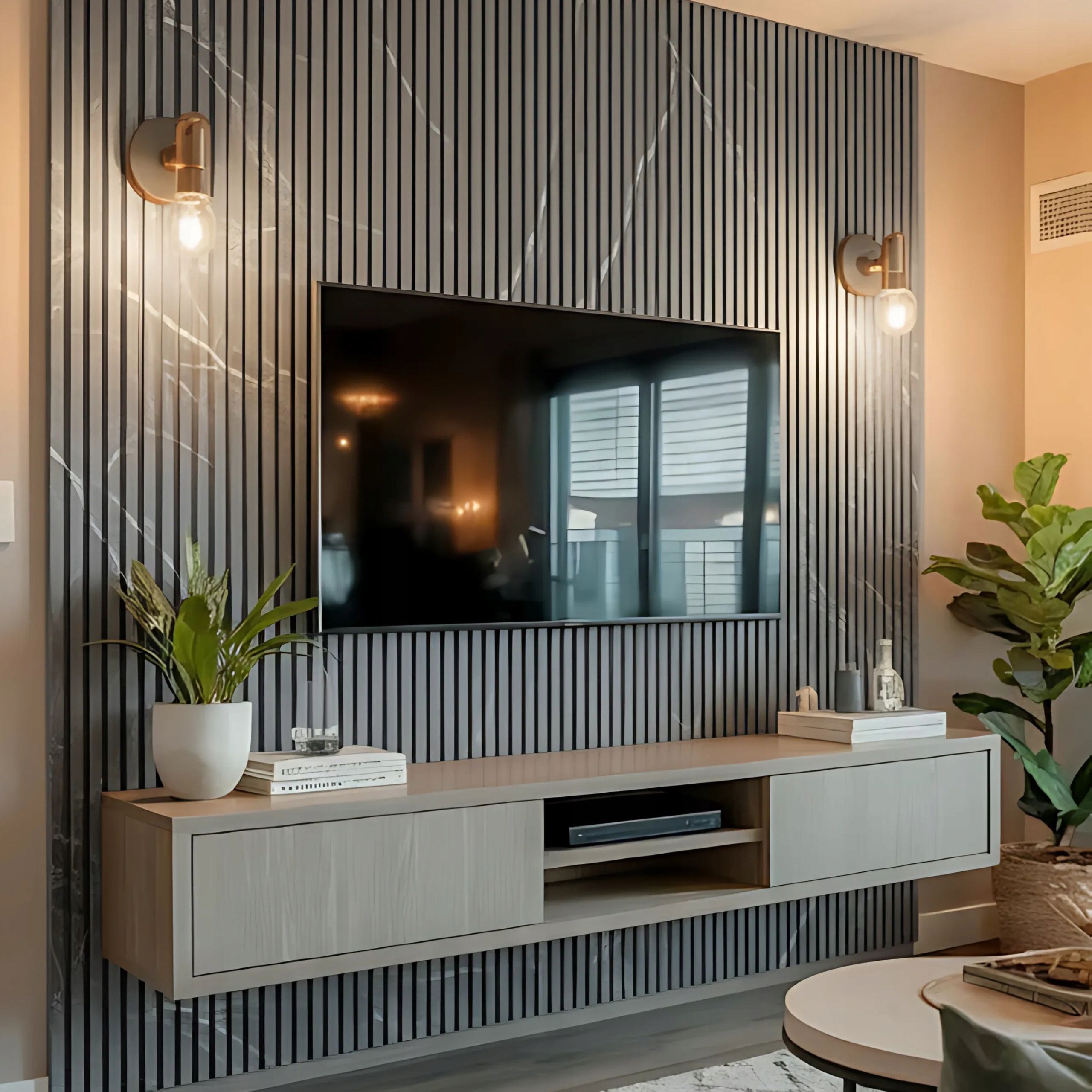 ➡️Отделка стен в гостиной - создают эффект элегантного, современного пространства.
