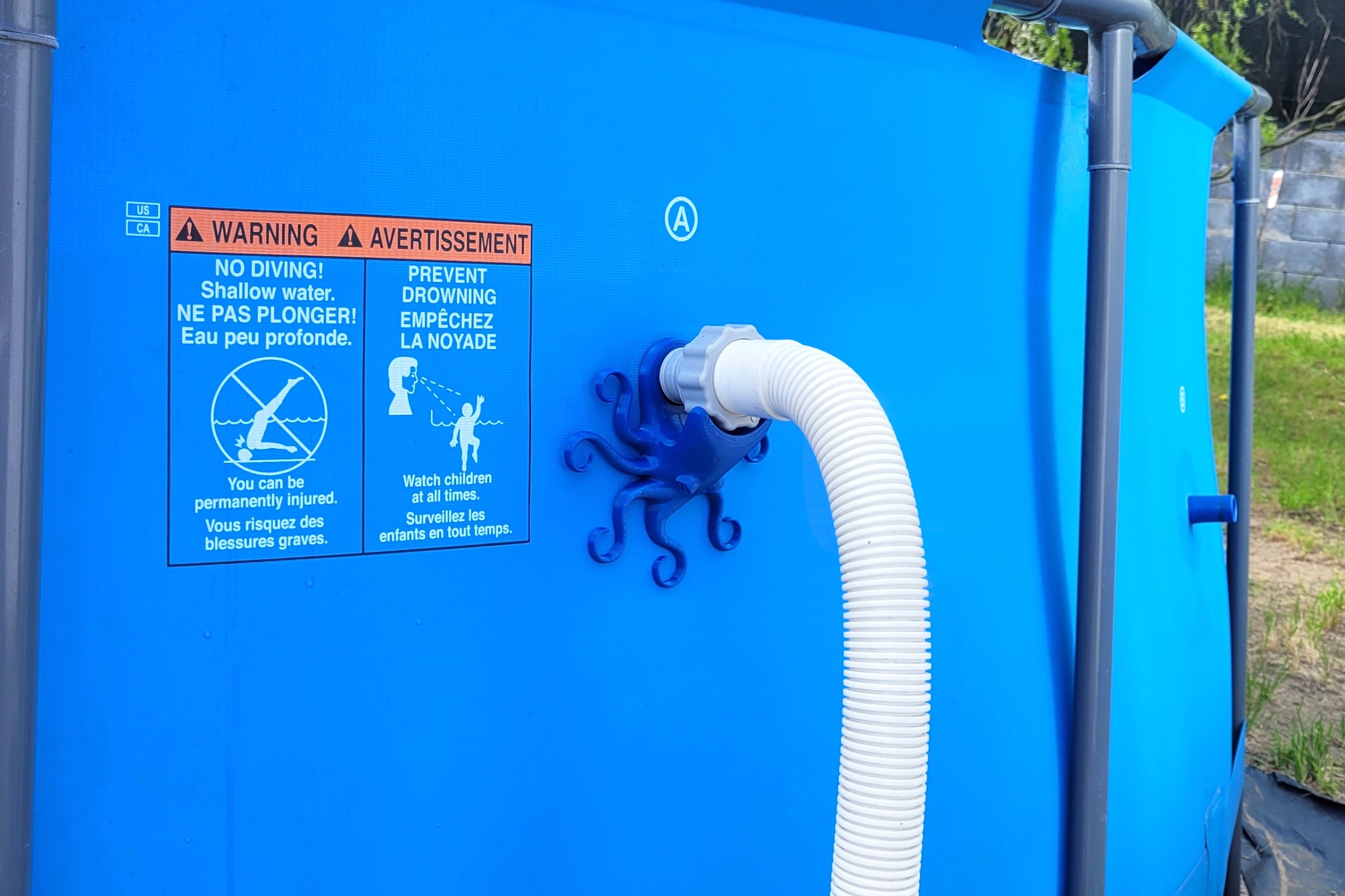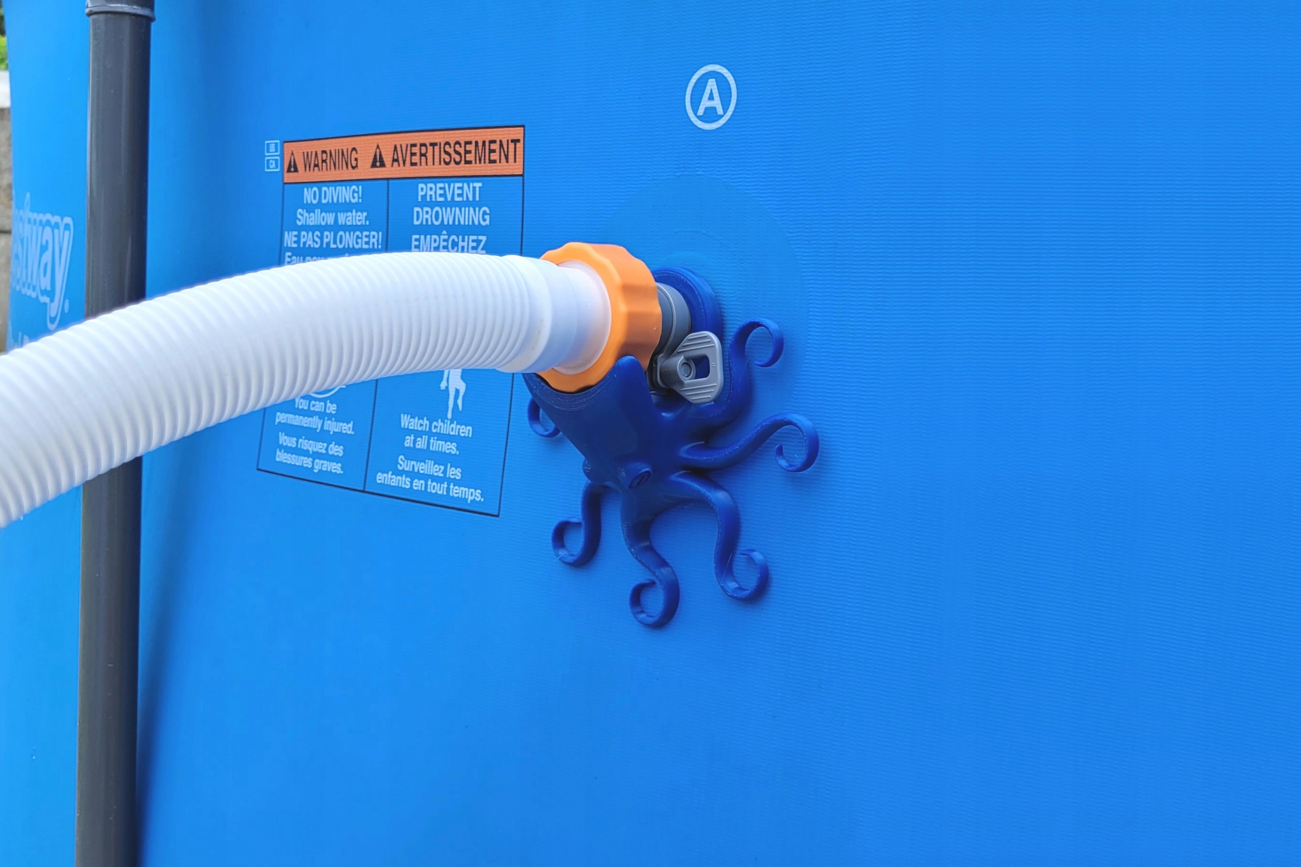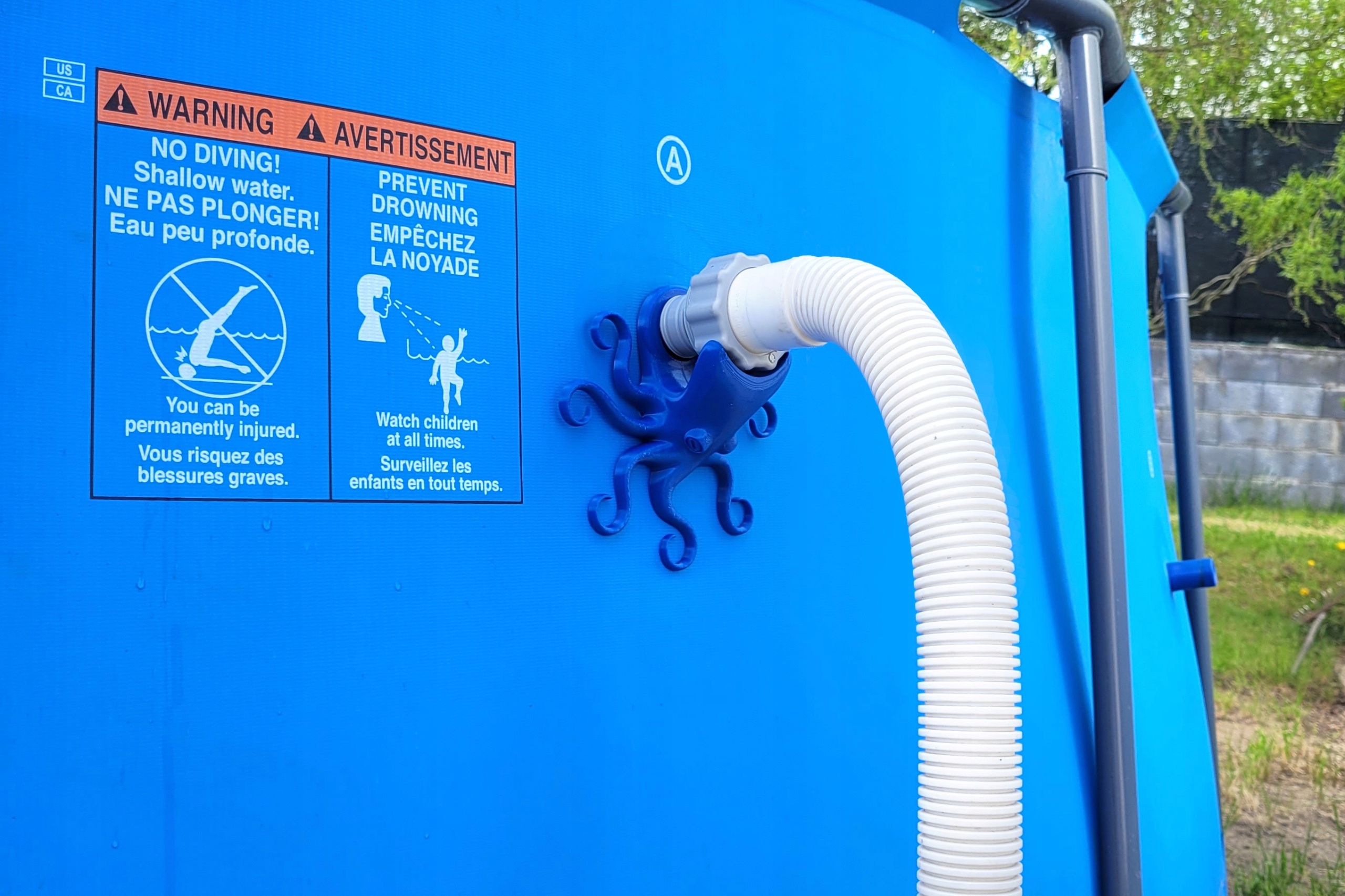 Установка очень проста и занимает всего две минуты. Снимите сетчатый фильтр изнутри бассейна и закройте отверстие пробкой или тканью. Открутите пластиковый хомут и отсоедините трубу от бассейна. Вставляем опору плоской стороной в бассейн, затем надеваем трубу обратно и затягиваем пластиковый хомут (чем глубже вставляем шланг, тем лучше он будет стабилизирован). Выверните отверстие и прикрутите сетчатый фильтр обратно. Готовый! Отныне вам не придется беспокоиться о нестабильных шлангах, которые могут повредить ваш бассейн.