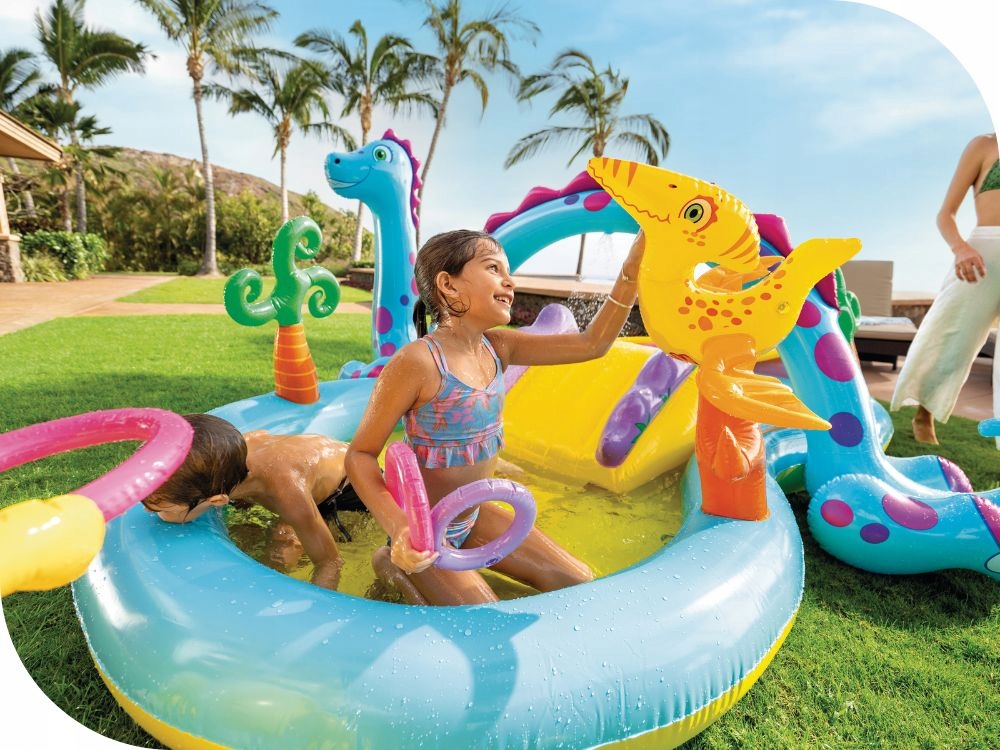 Детский игровой центр Dinoland от Intex — отличный способ спастись от жары вместе с малышом.