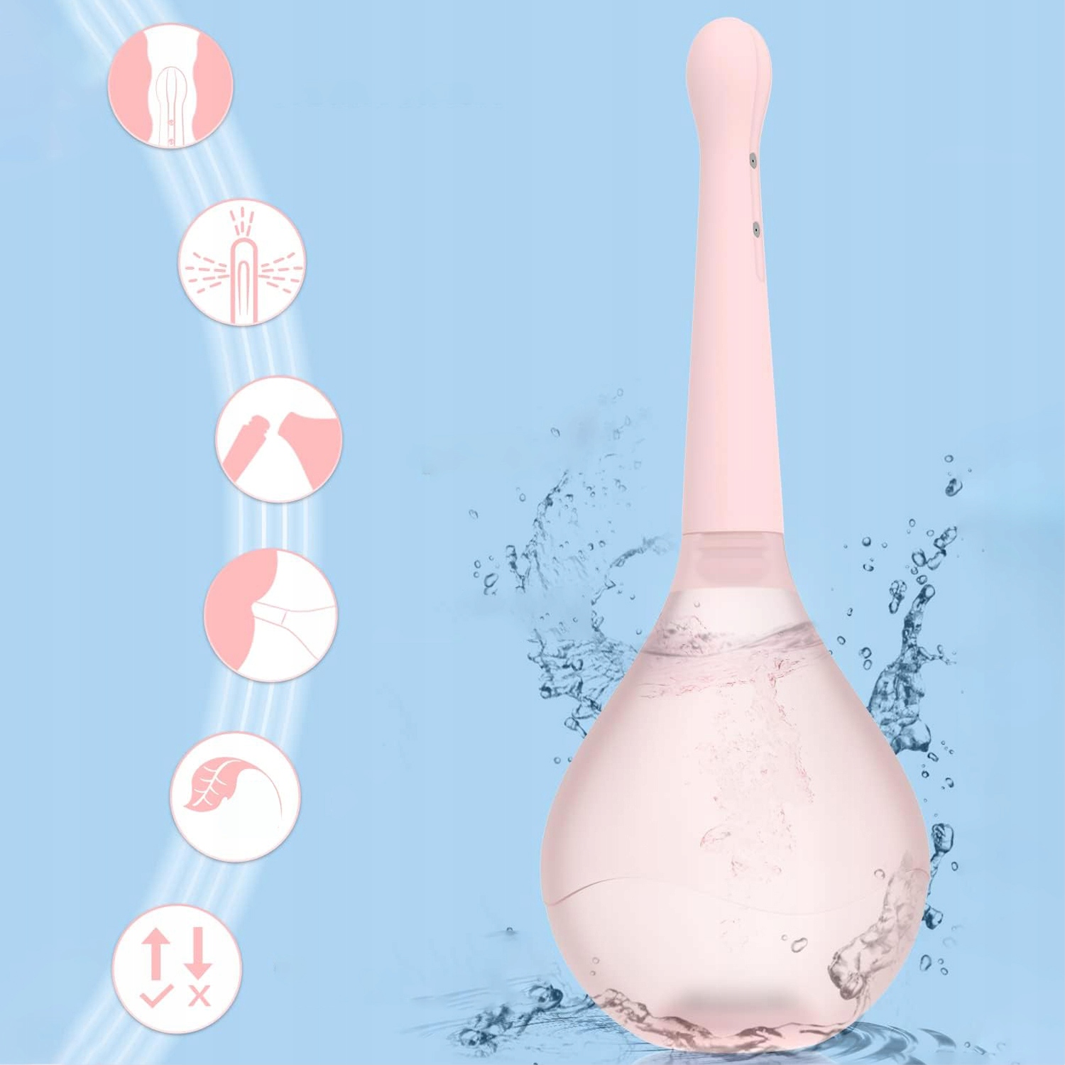 ✔ сопло имеет 5 портов спрея, равномерно распыляющую воду, и вы можете получить тщательную очистку на 360 °, нажимая силиконовой бутылкой, заполненной водой. Ondless, без латекса и без бисфенола A. Рекомендуется использовать с смазывающим маслом. -Парит для очистки хороша для здоровья вашего тела и не только помогает устранить неприятный запах, но также помогает облегчить запор, очистить кишечник и избавиться от бактериальных инфекций.