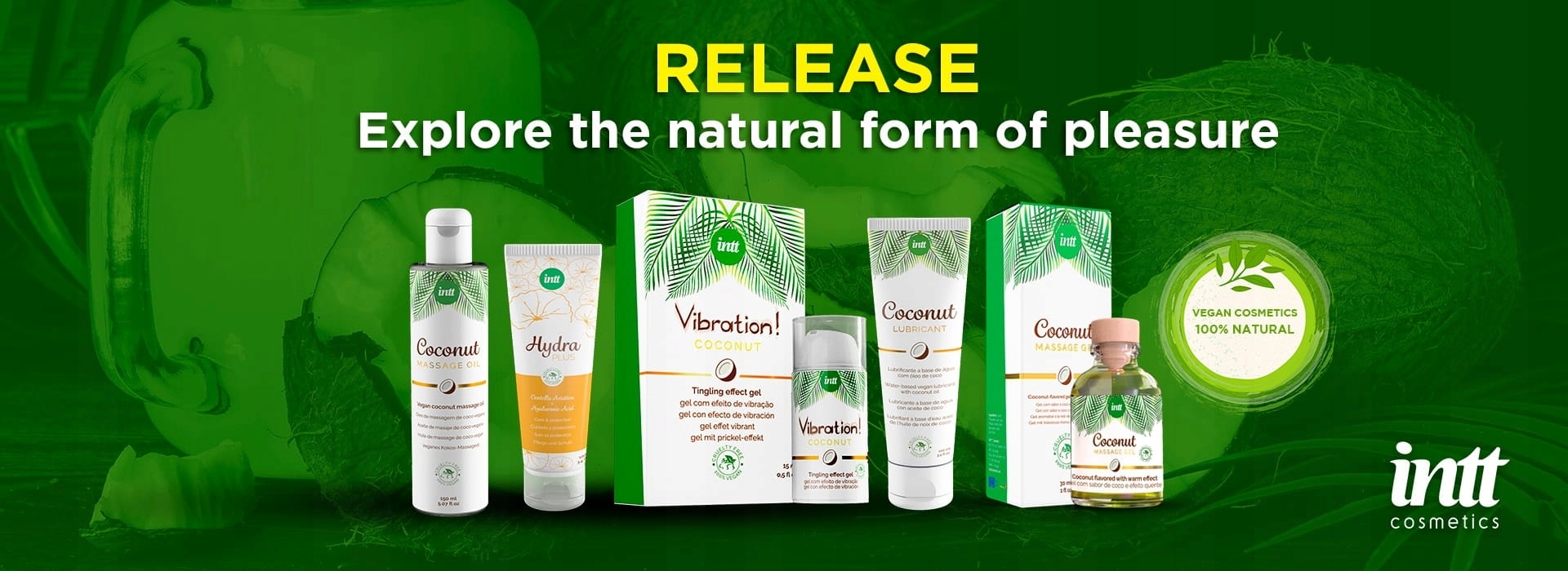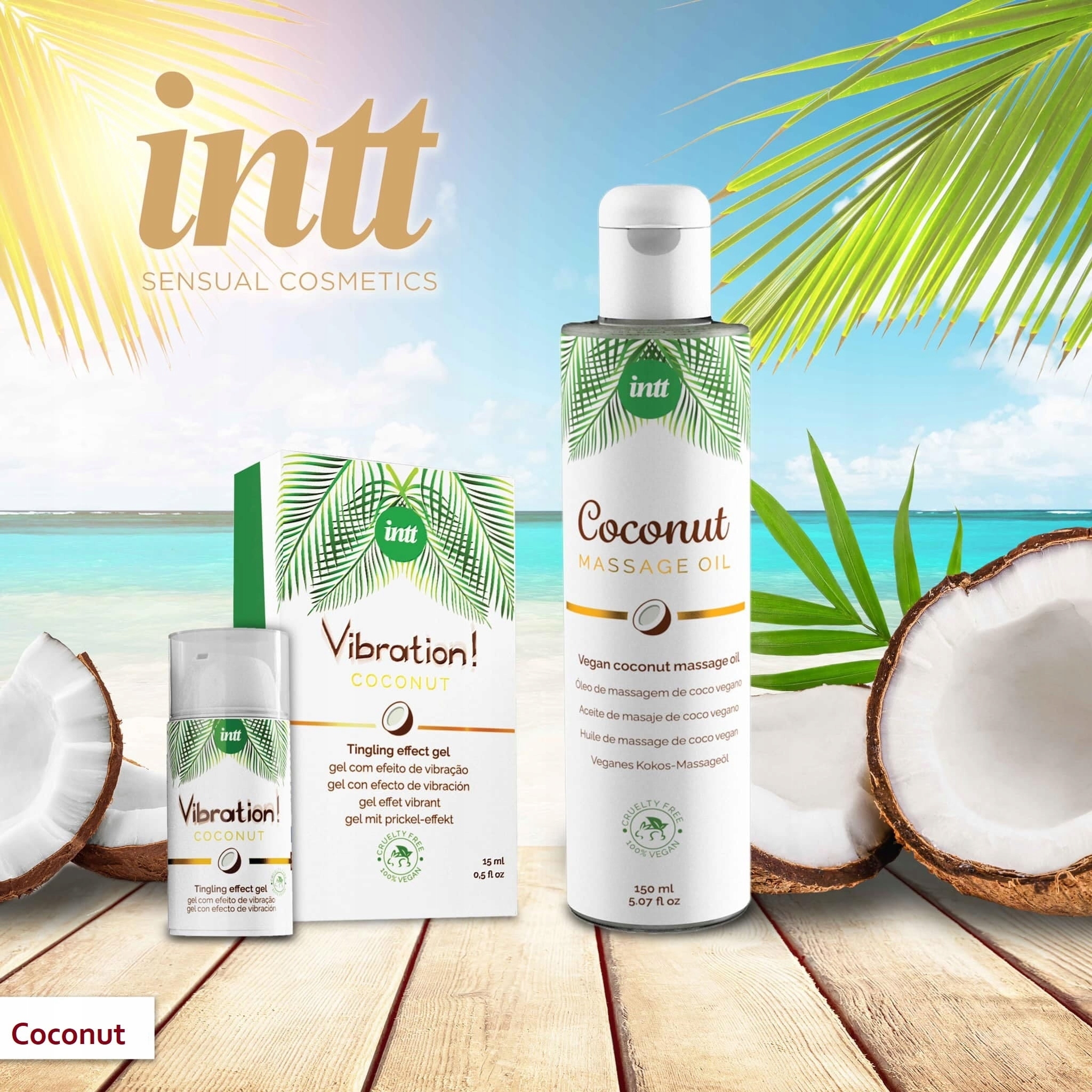 Специальная линия съедобной и стимулирующей косметики от Intt Cosmetics с восхитительным вкусом кокоса добавит горячих ноток парному и одиночному отдыху.
