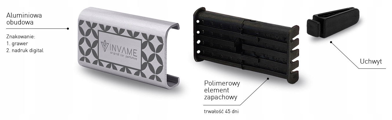 Носитель аромата представляет собой ароматизатор, изготовленный из высокотехнологичного полимера. Этот материал, благодаря своей гигроскопической структуре, насыщен большим количеством специально составленных и отобранных ароматических масел, которые постепенно высвобождаются с его поверхности с потоком воздуха. Использование новейшего материала существенно продлевает срок службы освежителя воздуха и гарантирует отсутствие контакта с жидкими маслами (ароматический вкладыш сухой), что обеспечивает стерильность и чистоту в салоне автомобиля.