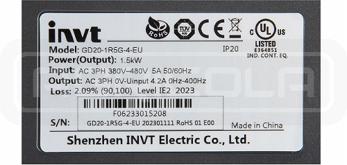 ВЕКТОРНЫЙ ИНВЕРТОР GD20-1R5G-4-EU ДЛЯ ДВИГАТЕЛЯ 1,5 кВт