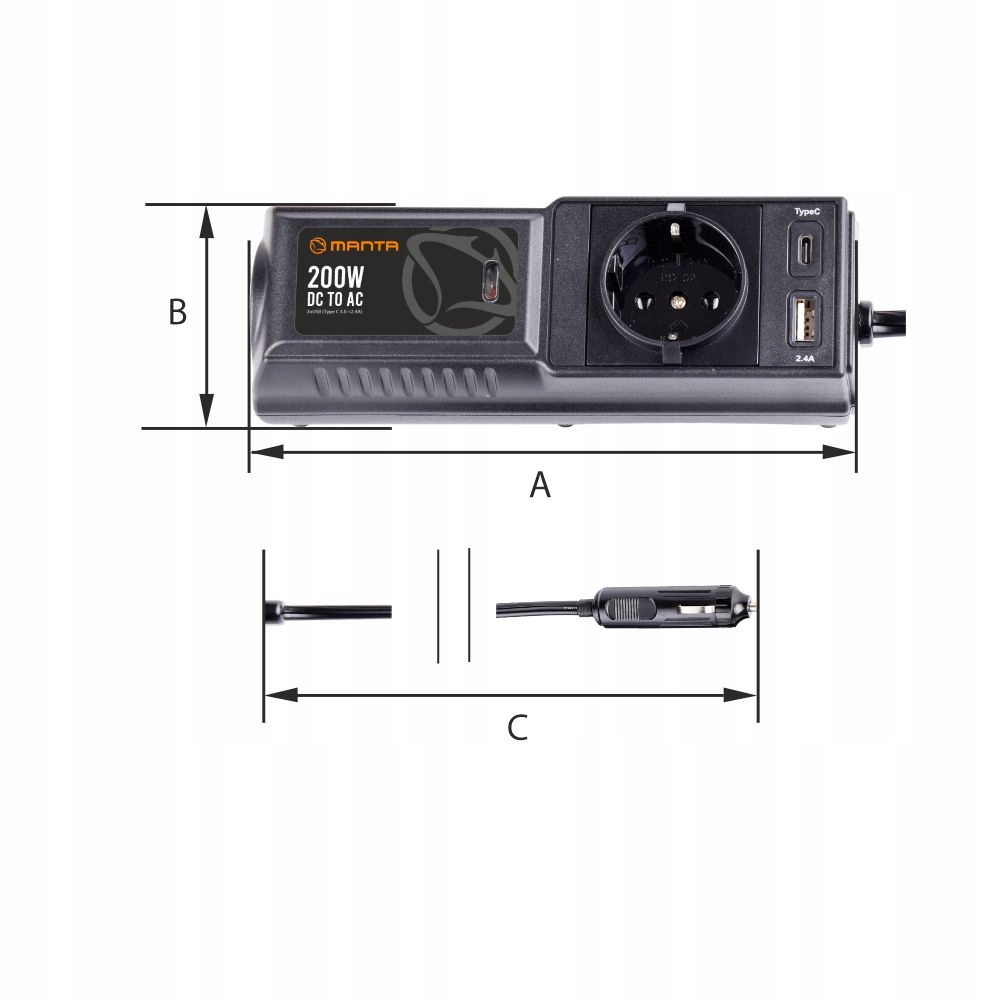 АВТОМОБИЛЬНЫЙ ИНВЕРТОР MANTA MPI200C 12В 230В С ПИКОВОЙ МОЩНОСТЬЮ ДО 400ВТ!
