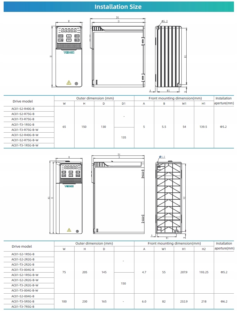 Инверторы серии AC01 полностью интегрируют VF и векторные алгоритмы управления с разомкнутым контуром асинхронных и синхронных двигателей. с учетом требований привода двигателей мощностью до 7,5 кВт
