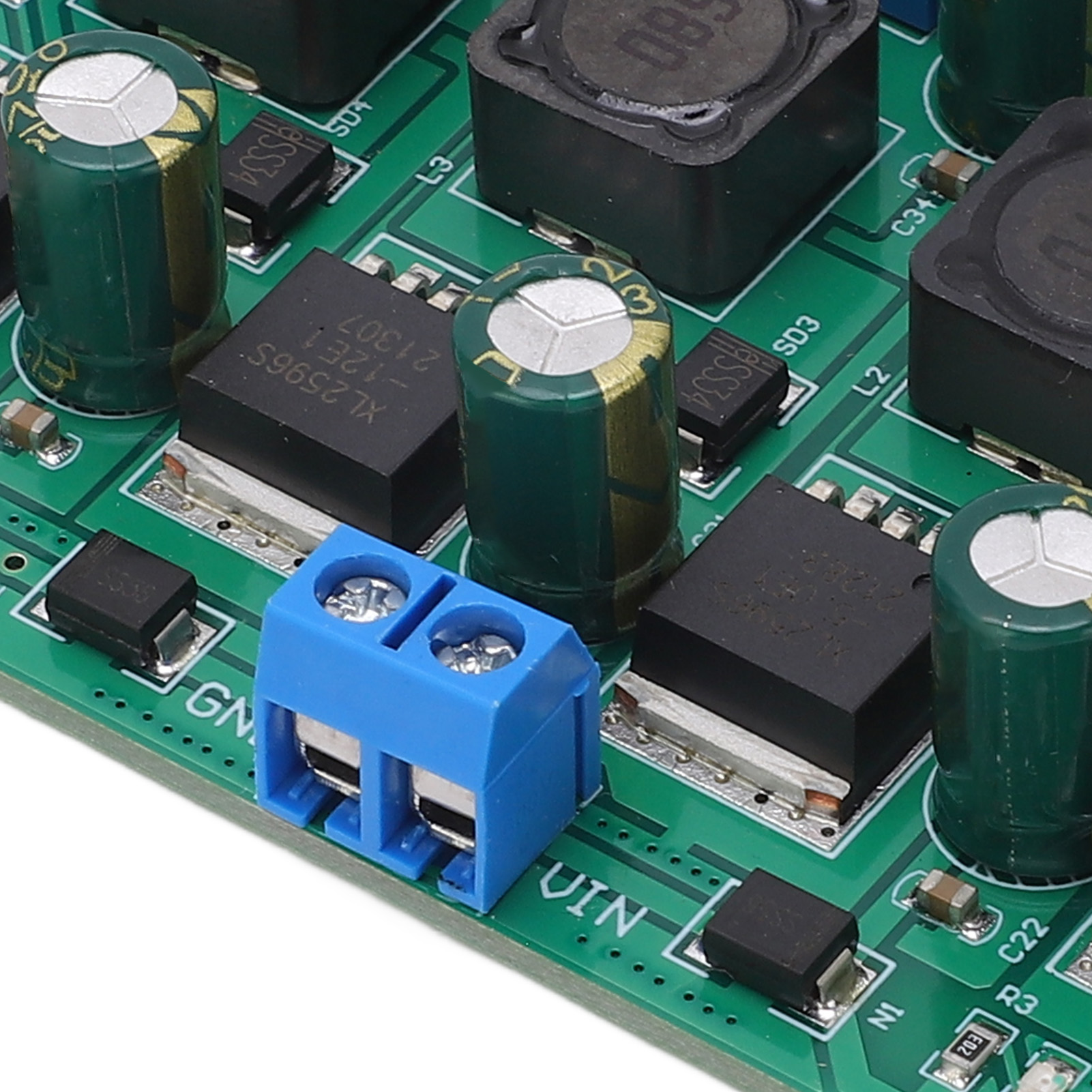 3. Лучшая конструкция: алюминиевый электролитический конденсатор и мощная катушка индуктивности обеспечивают стабильное выходное напряжение. Обработка окна на задней стороне печатной платы более способствует отводу тепла от чипа.