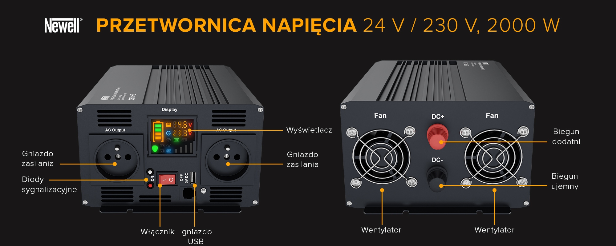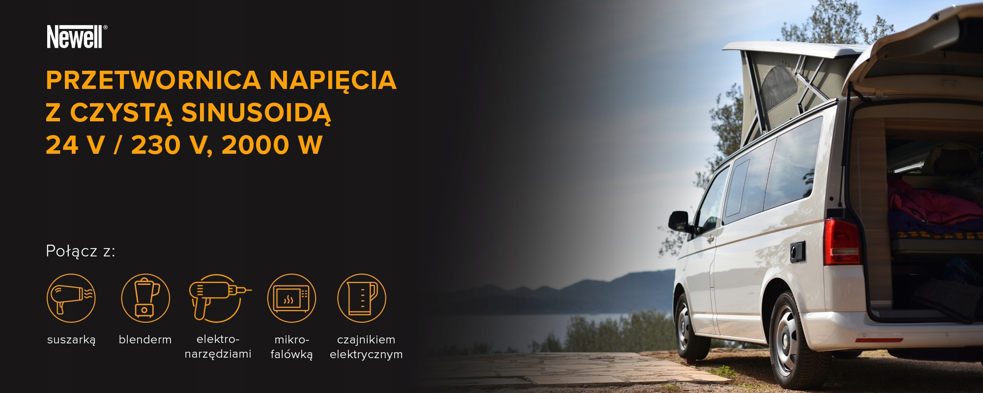 - модель: Преобразователь напряжения Newell с чистой синусоидой - 24 В/230 В, 2000 Вт