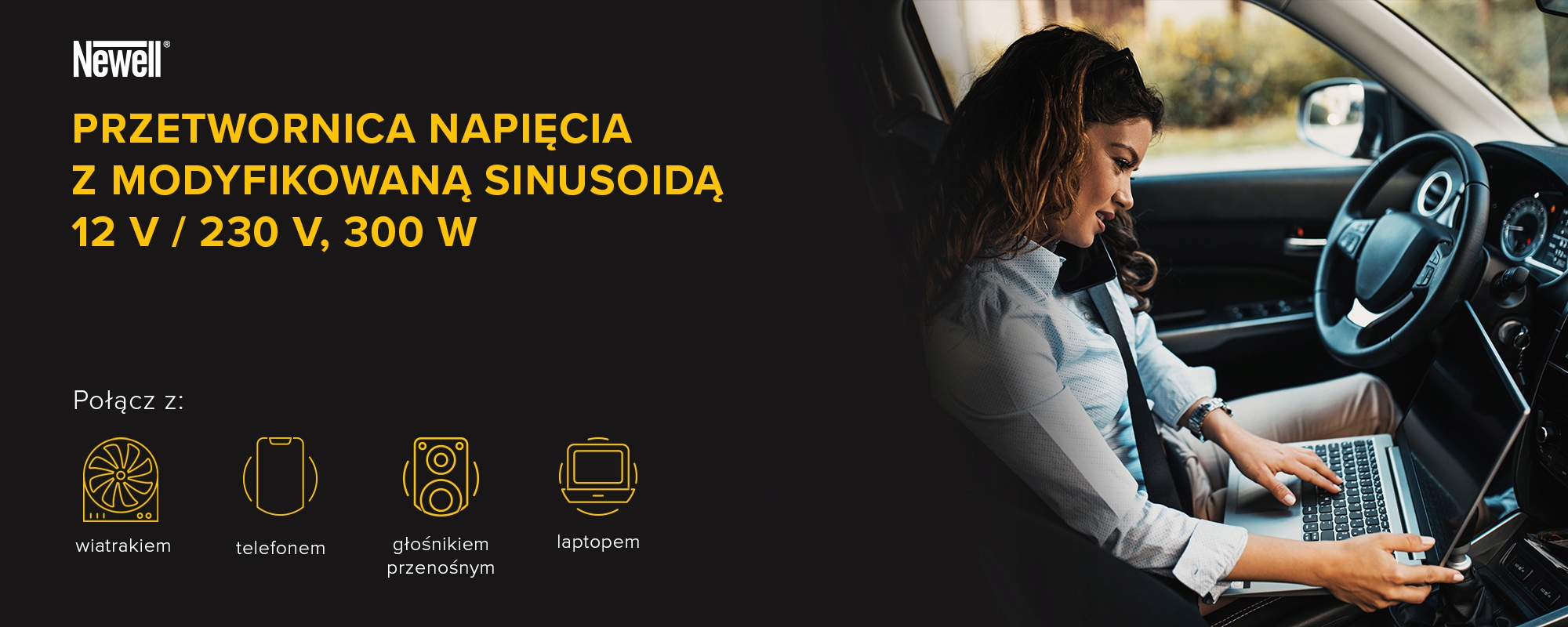 - модель: преобразователь напряжения Newell с модифицированной синусоидой - 12 В/230 В, 300 Вт