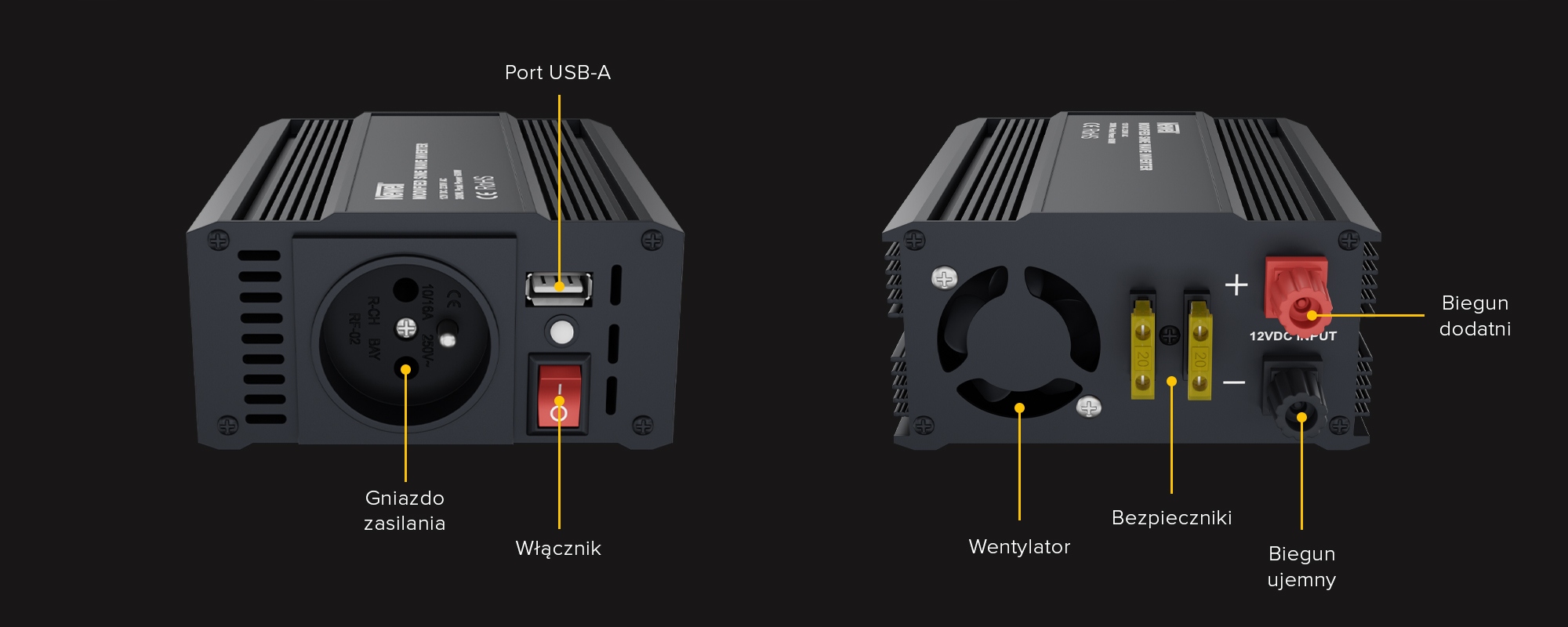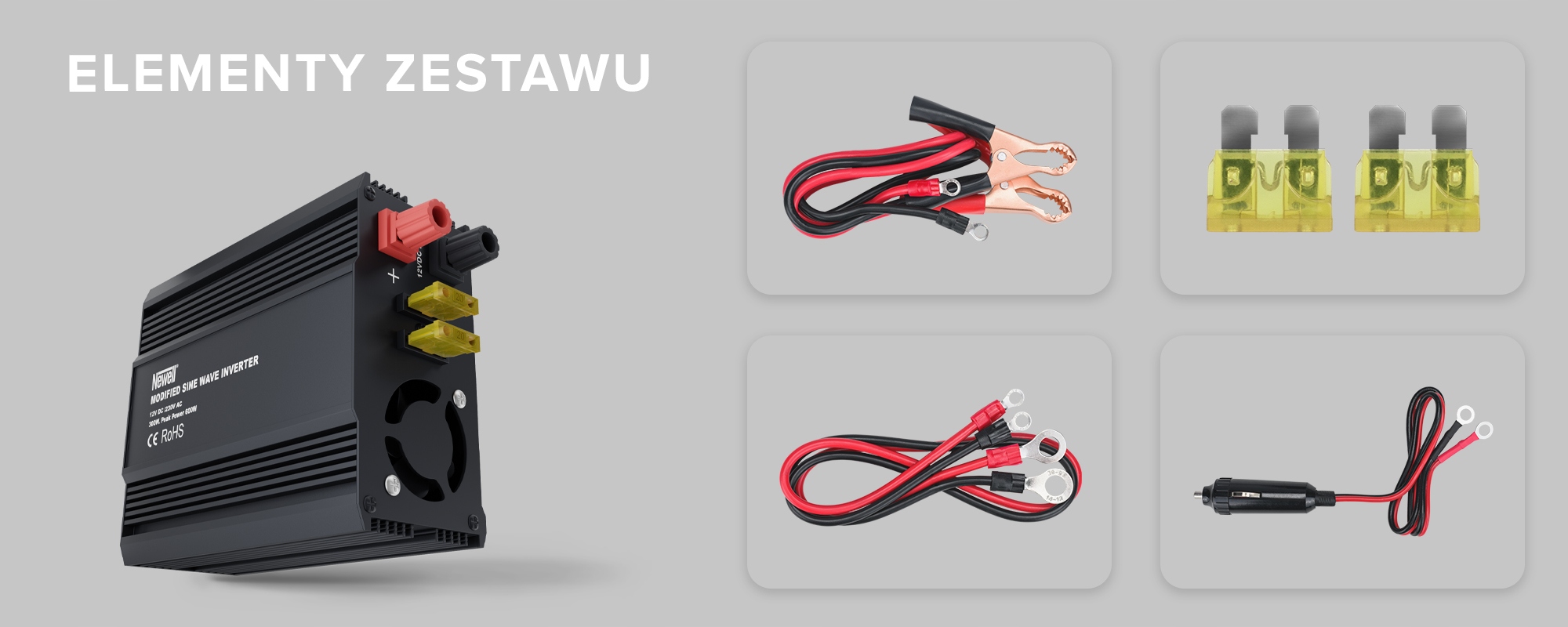Преобразователь напряжения Newell с модифицированной синусоидой - 12 В/230 В, 300 Вт - идеальный выбор для людей, которые часто путешествуют или хотят использовать свои любимые устройства там, где нет доступа к традиционным розетки электрические. Благодаря этому вашим универсальным источником питания станет аккумулятор или автомобильный прикуриватель. Устройство оснащено 1 традиционной электрической розеткой (стандарт E) и 1 розеткой USB-A. К преобразователю можно легко подключить такие устройства, как обогреватели, ноутбуки, смартфоны, планшеты и многие другие. Максимальная полезная мощность инвертора — 300 Вт. В комплекте помимо обычных проводов и кабеля прикуривателя вы также найдете удобные кабели с клеммами (зажимами), что еще больше облегчит подключение устройства к аккумуляторам.