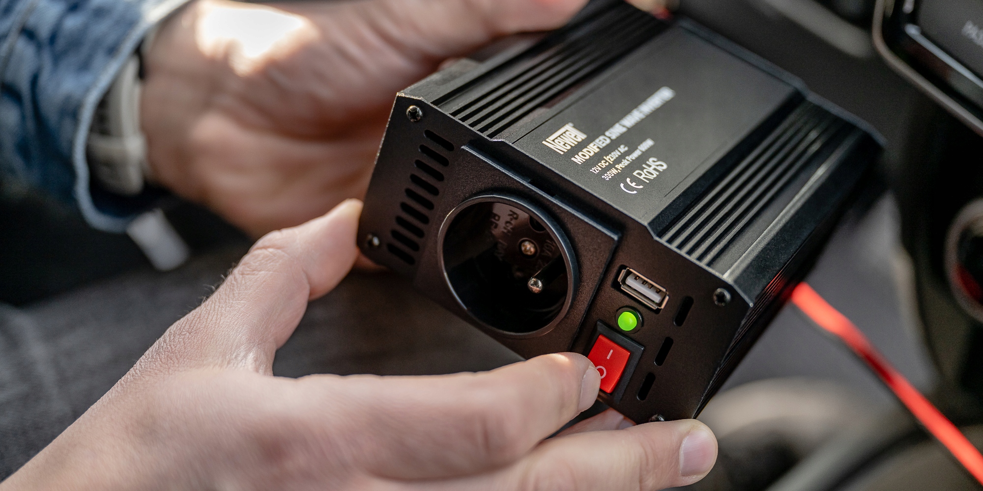 Доступ к электрическим розеткам во время путешествия может быть проблематичным. Обогреватель, чайник или ноутбук — это устройства, которые зачастую невозможно подключить к павербанку или гнезду прикуривателя автомобиля. Тогда на помощь приходит преобразователь напряжения Newell с модифицированной синусоидой – 12 В/230 В, 300 Вт. Вам не придется покупать новые электронные устройства, чтобы использовать их в путешествии. Инвертор позволит аккумулятору или автомобильному прикуривателю питать оборудование, которое раньше было совместимо только с традиционными электрическими розетками.