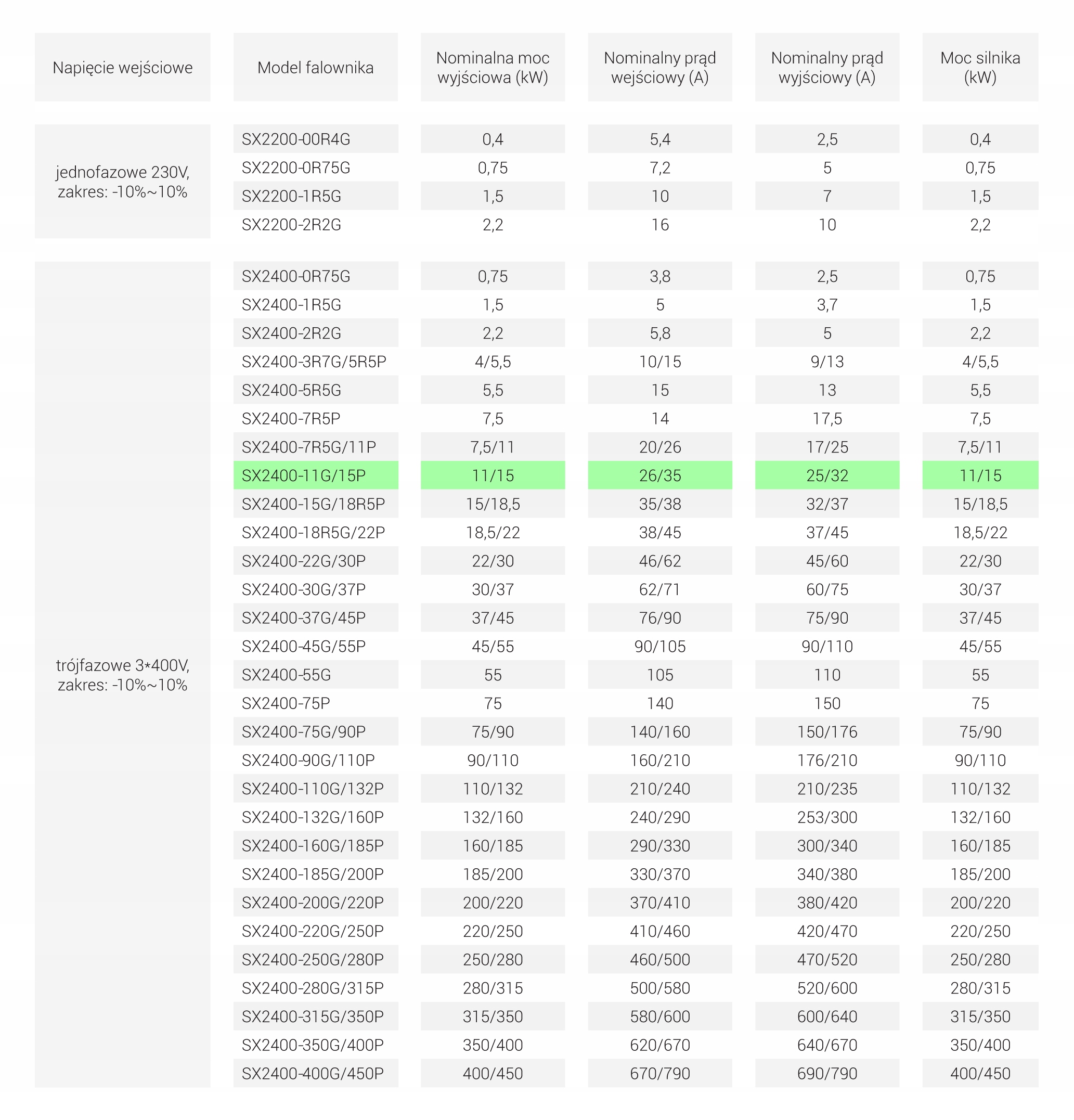 - Exit-wy: 3 x 400V (3-фаза 400V)