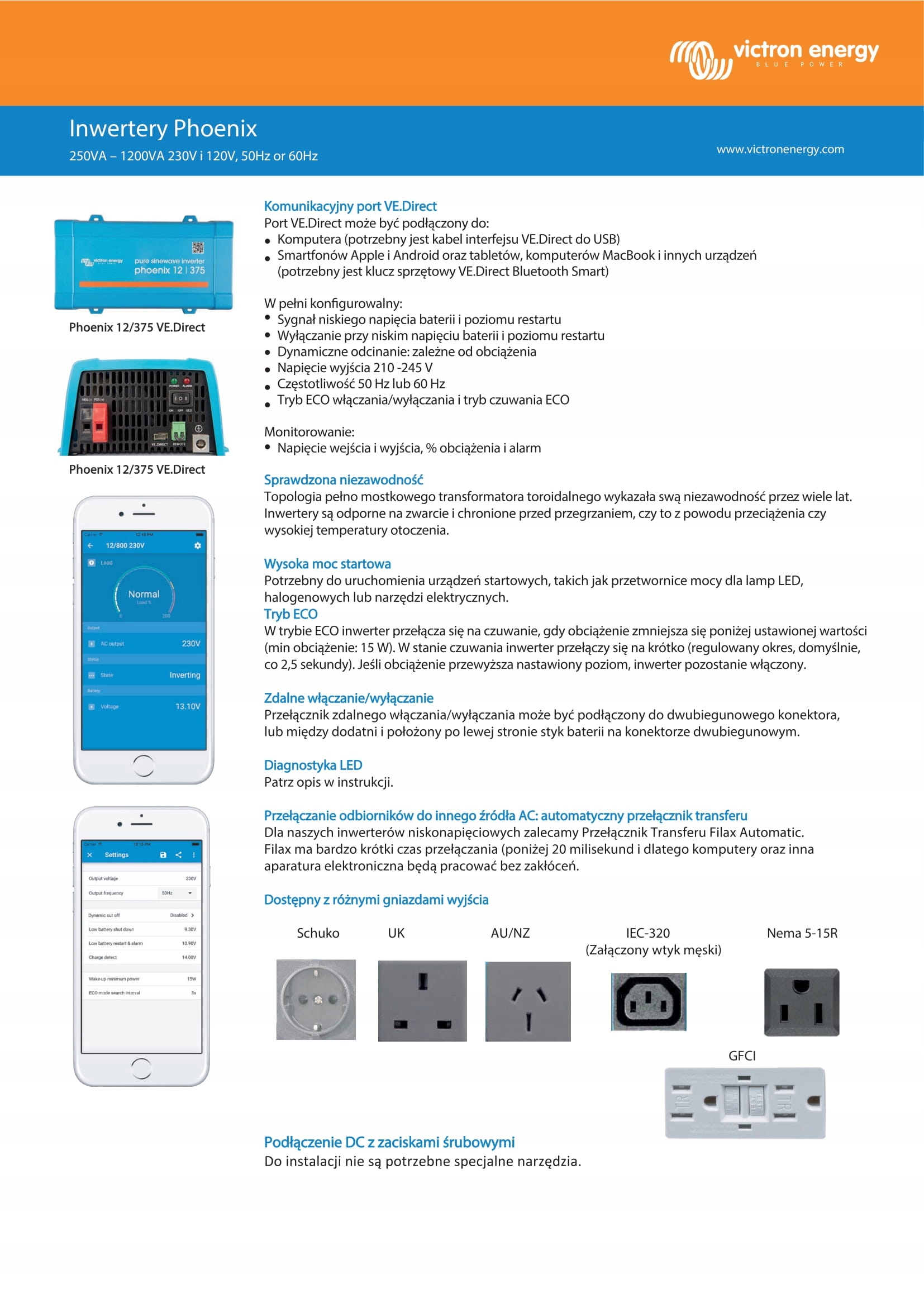 Инверторы Victron Energy серии PHOENIX позволяют питать бытовую технику, которой требуется напряжение 230/120 В переменного тока, от аккумуляторов для автомобилей для отдыха или автомобильных аккумуляторов с напряжением 12, 24 или 48 В постоянного тока.