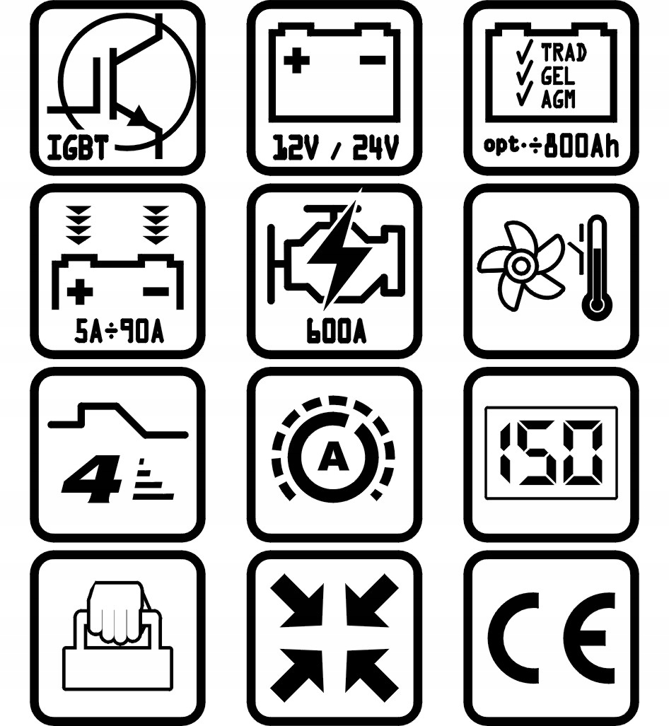 - имеет функцию поддержки запуска двигателей внутреннего сгорания (бензин, дизель) с эффективным, но безопасным током до 600 В. Аи позволяет точно подобрать максимальный ток зарядкиаккумулятора в диапазонеот 5 А до 90 А