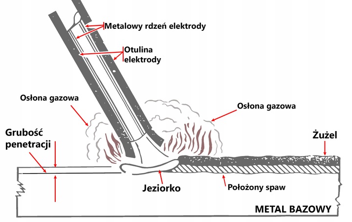 В методе ММА используется покрытый электрод, который состоит из металлического сердечника, покрытого прессованным покрытием. Между концом электрода и свариваемым материалом возникает электрическая дуга. Дуга зажигается контактным путем при касании конца электрода к свариваемому материалу. Мощность сварки можно регулировать от 20 до 200 ампер.