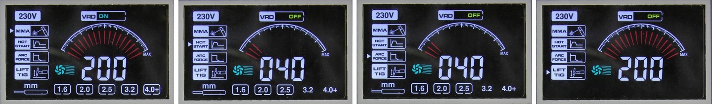 Приведенный выше индикатор информирует о рекомендуемой толщине электрода для данного сварочного тока. Это подсказка для начинающих пользователей: после установки тока, соответствующего выбранному электроду, рекомендуется корректировка после испытаний на материале.