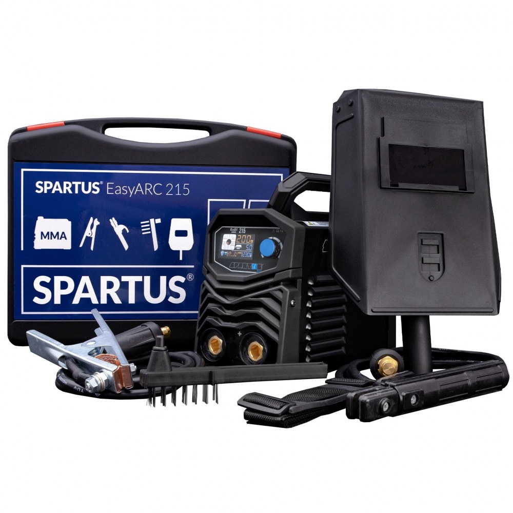 SPARTUS® EasyARC 215 — небольшой и легкий инверторный сварочный аппарат. Он обеспечивает сварку постоянным током MMA и TIG Lift в диапазоне токов 10–200 А с высоким рабочим циклом 60%. Он питается от однофазной сети.