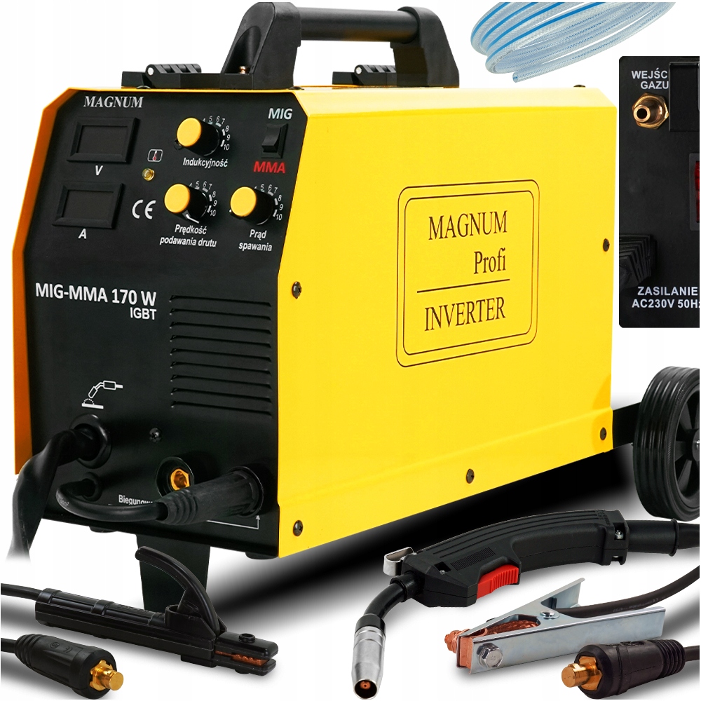 Magnum MIG-MMA 170W IGBT — полуавтоматический сварочный аппарат, предназначенный для сварки методами MIG/MAG (в газовой защите) или самозащитной проволокой без газа. Также может быть использован для ручной сварки покрытыми электродами – методом ММА.