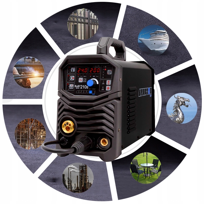 Spartus Easmsig 210S has legible and easy to use function panel , which has, among others parameters: welding current/wire administration speed/inductance,