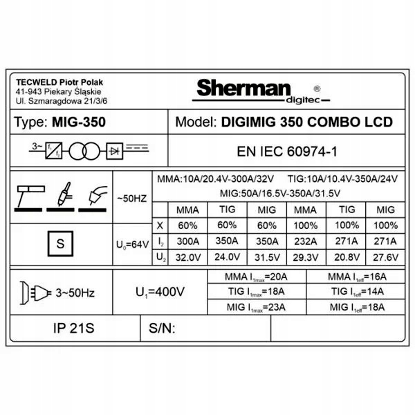 SHERMAN DIGIMIG 350 COMBO LCD СВАРОЧНЫЙ АППАРАТ