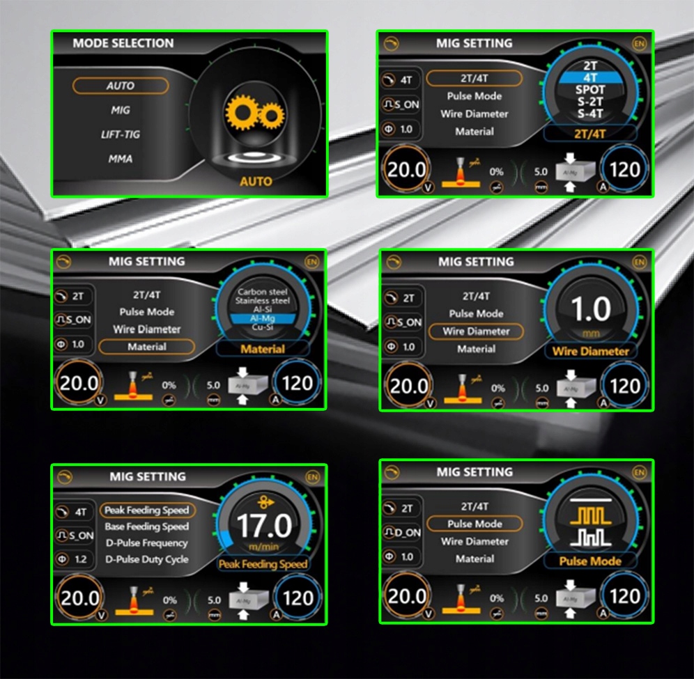 - MIG 2-PULS - синергетические настройки с двойным импульсом.