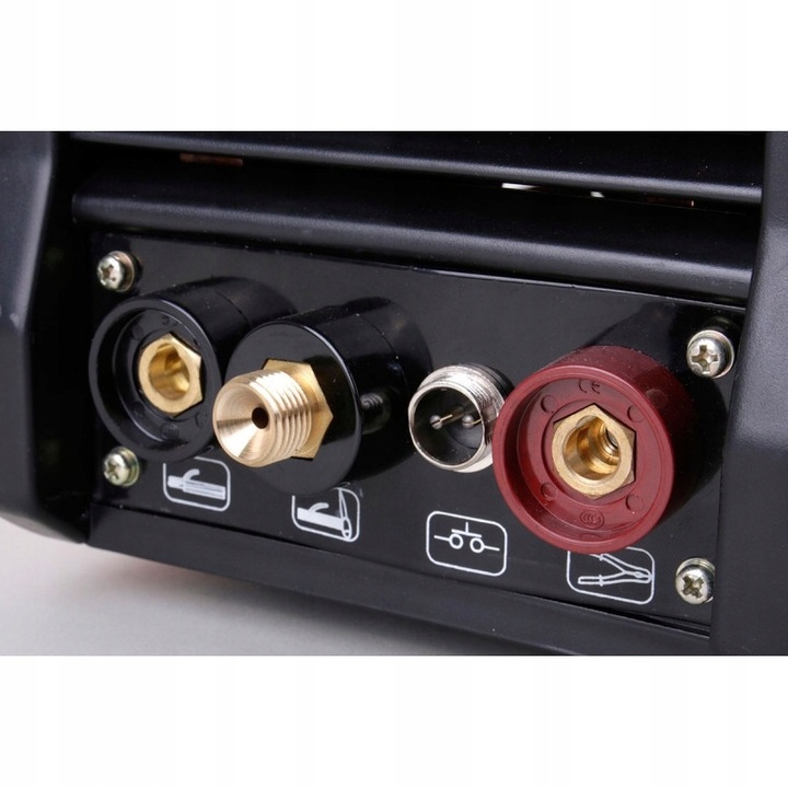 В комплект входят сварочная рукоятка для сварки покрытыми электродами, массовая рукоятка и сварочная рукоятка в защитном рукаве длиной до 4 м для сварки в аргоновой среде. Подключение отдельных элементов комплекта к передней панели сварочного аппарата предельно просто и интуитивно понятно. На задней стороне устройства имеется предохранитель.
