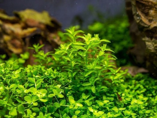 Это растение имеет стебель и растет вверх. Поэтому она вырастает выше и подходит не для переднего плана, а для задней части и краев аквариума.