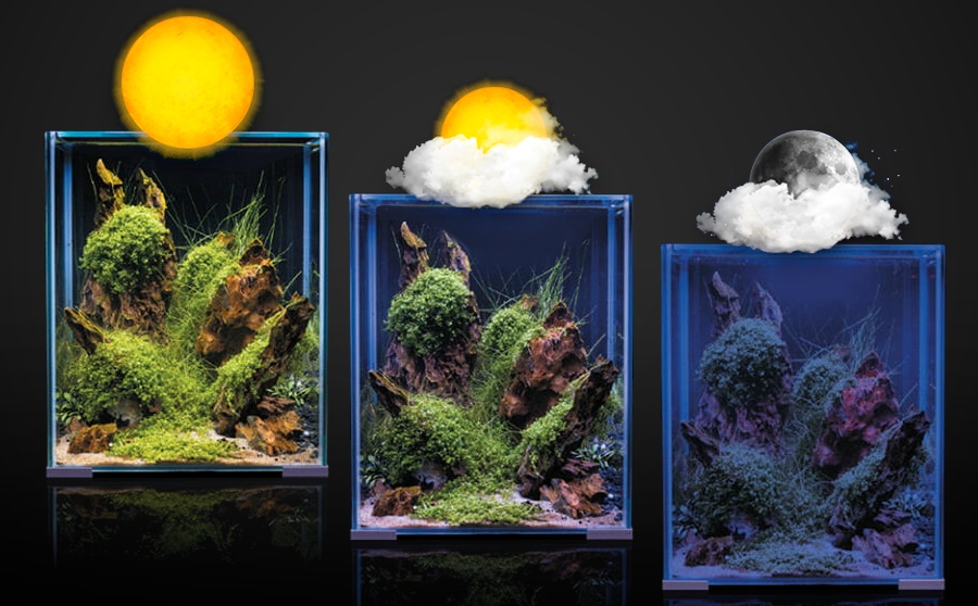 С помощью драйвера EasyControl вы можете настроить загорание только синих светодиодов, тем самым обеспечивая затемнениеночной режим. Это оценит каждый аквариумист, который любит свой аквариум даже в поздние часы. Использование ночного режима не беспокоит рыбу и не способствует росту водорослей, вызванному длительным световым днем.