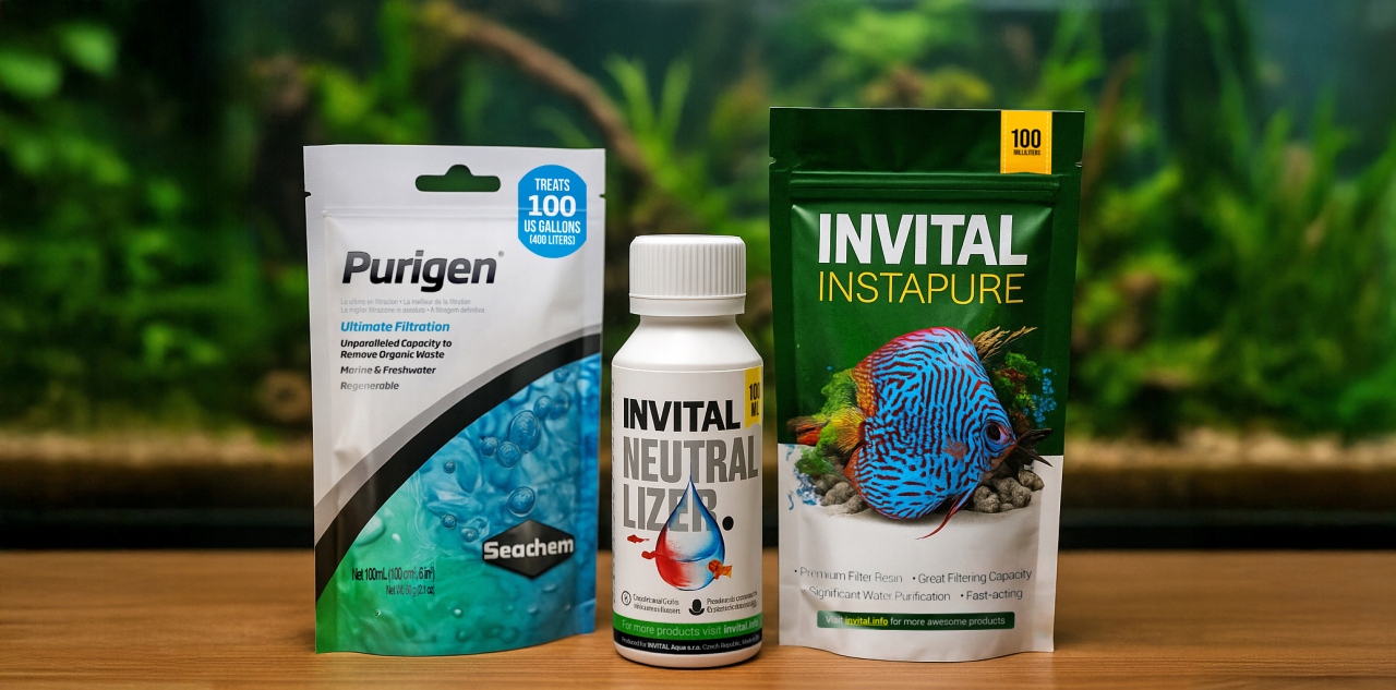 Многие чистящие средства, такие как Seachem Purigen или INVITAL InstaPure, требуют регулярной регенерации для поддержания 100 % эффективности. Однако для регенерации часто требуются сильные химикаты на основе отбеливателя, которые не подходят для аквариумной среды. Поэтому после регенерации рекомендуется провести так называемую очистку фильтрующего материала с помощью Нейтрализатора ИНВИТАЛ.