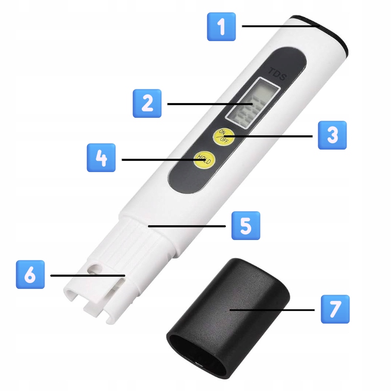 3️⃣ Кнопка ВКЛ/ВЫКЛ – используется для включения и выключения TDS-метра.