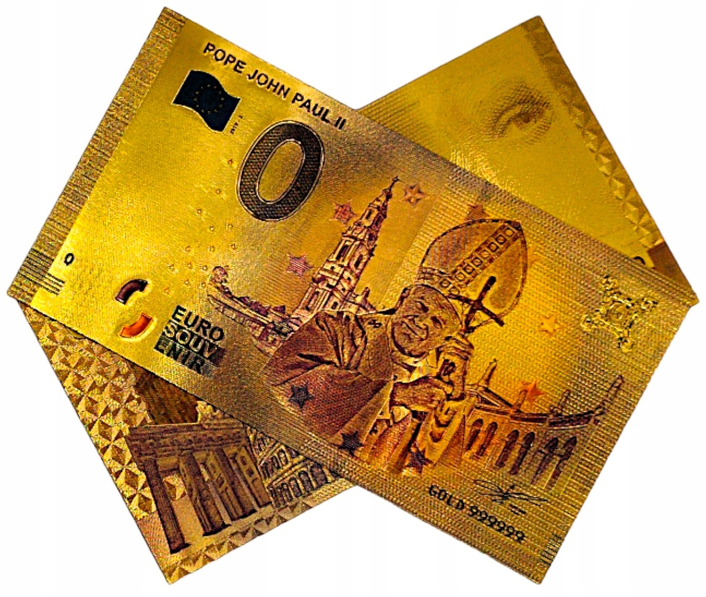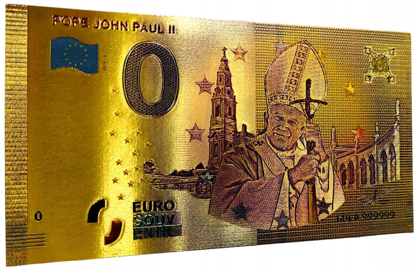 Позолоченная банкнота номиналом 0 евро — необычный сувенир коллекционера , и когда такая уникальная личность, как Иоанн Павел II, становится настоящим сокровищем для каждого любителя истории и религии.