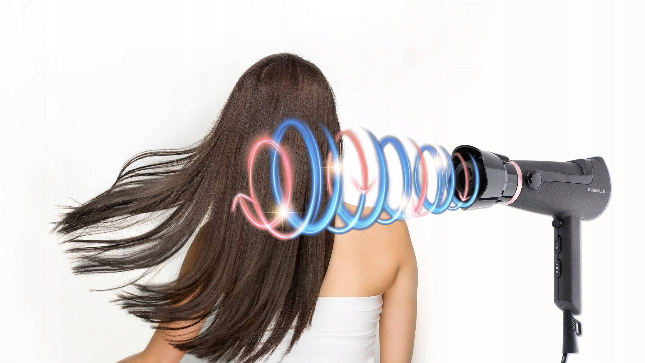 Представленная модель Krexus имеет встроенный генератор отрицательных ионов, благодаря которому вы сможете еще лучше заботиться о состоянии волос. твои волосы. Сушка, а точнее, повышенная температура, приводит к образованию на поверхности волос положительно заряженных ионов, которые и вызывают проблемы с укладкой волос. Ионизационный фен их нейтрализует и уменьшает электростатический эффект, благодаря чему волосы не вьются и не электризуются, а укладка становится намного проще. Эта функция особенно полезна, если вы хотите получить гладкие, блестящие и эластичные волосы после сушки.