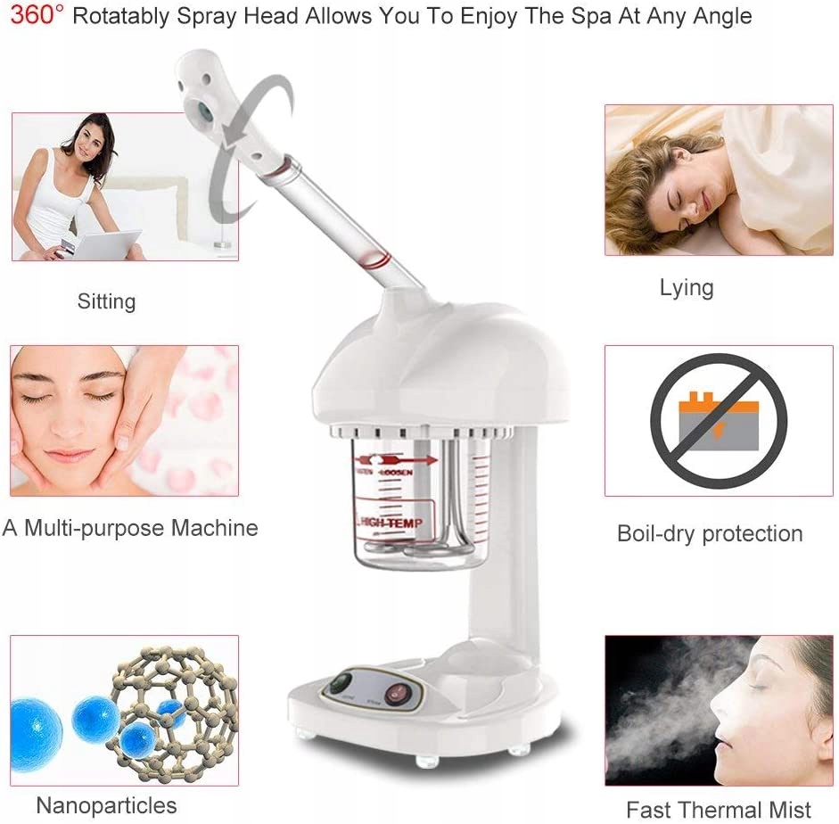 - ★★★ ПОЛНОСТЬЮ ВАШИХ ФАКТОВ: Профессиональный отпариватель для лица, вращающаяся на 360° распылительная головка, позволяющая наслаждаться спа-услугами под любым углом, дизайн роликового типа, его можно свободно перемещать, что означает, что вы можете быть дома или даже в путешествии. Насладитесь профессиональным спа-салоном для лица!