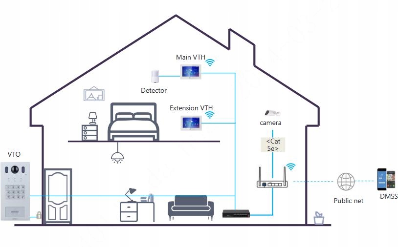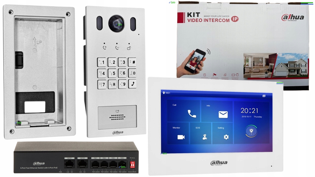 KTP05 -это готовый набор системы Video Intercom, посвященная отдельным пользователям (например, дома в одиночных семьях, виллах и т. Д.). Набор состоит из станции VTO3222E-P GATE, белого монитора VTH2621GW-WP, необходимого переключателя POE PFS3006-4T-36 и плагин CAN VTM116-01. Установка системы KTP05 проста и не занимает много времени. Кроме того, использование переключателя POE обеспечивает удобное решение, потому что в дополнение к отправке данных он обеспечивает питание как на станцию Gate, так и на монитор непосредственно через один кабель UTP. Пользователь может обрабатывать набор с помощью программы управления или приложения для мобильных устройств.