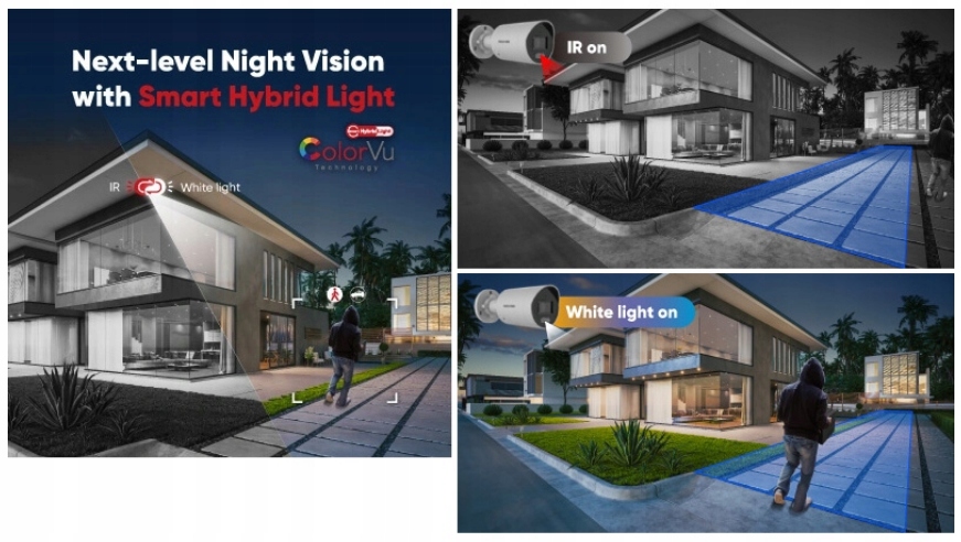 Интеллектуальный гибридный иллюминатор является одной из моделей освещающих, используемых в камере. Это позволяет вам включать белый свет только в случае обнаружения в зоне обнаружения человека или транспортных средств. В случае, если человек покинет контролируемую область, светодиодный осветитель переключается на ИК -освещение через 1 минуту. В дополнение к перечисленному режиму у пользователя есть выбор светодиодного режима (только белый свет, который допускает красочное изображение ночью); ИК -режим (только инфракрасный) или полное выключение освещения.