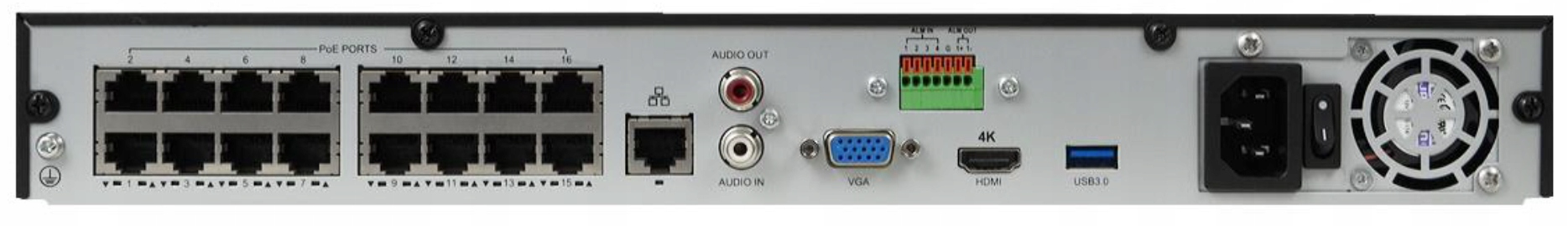 16-канальный IP-рекордер со встроенным PoE-переключателем.