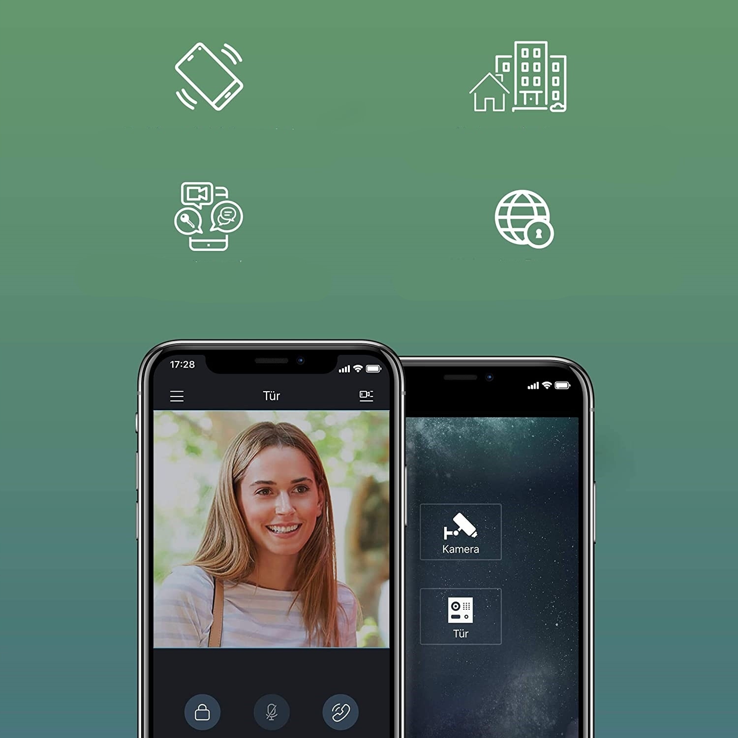 Как только раздается звонок в дверь, вы можете увидеть, кто стоит перед дверь на витрине; ваши гости четко отображаются под пропущенными и отвеченными звонками. Это означает, что вы всегда в курсе того, что происходит у вашей двери, даже когда вас нет. Вызывная станция включает в себя поворотную цветную HD-видеокамеру с разрешением 1,3 Мп и широкоугольным объективом с дальностью обнаружения 100°. Аудио и изображение с камеры передаются не только на видеодомофон, но и на ваш смартфон и планшет. Находитесь ли вы дома или в пути, вы можете общаться с посетителями откуда угодно, видеть их и открывать двери.