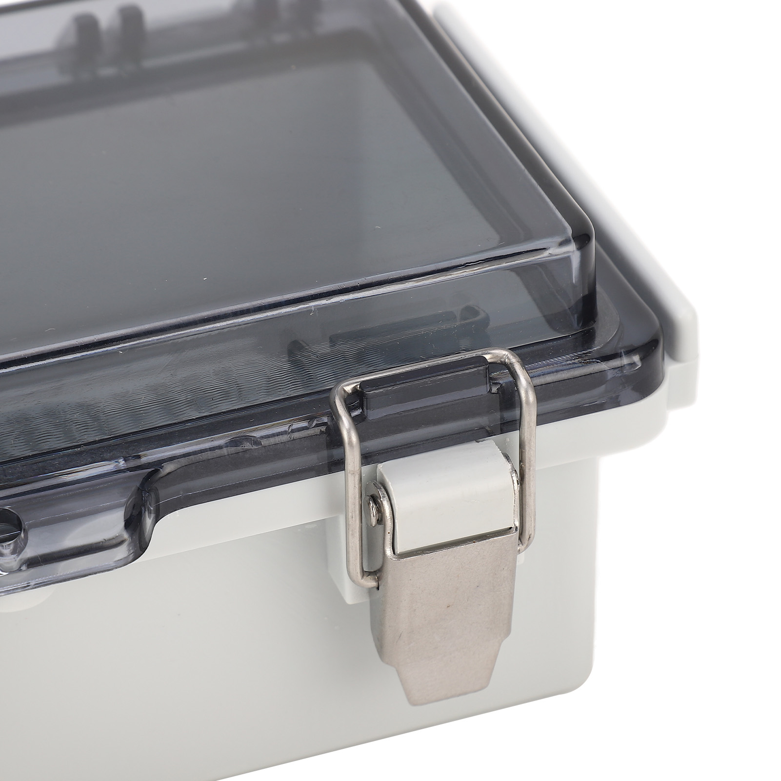 2. ПРОЗРАЧНАЯ КРЫШКА: верхняя крышка этой электрической распределительной коробки прозрачна, что делает внутренние компоненты более видимыми.