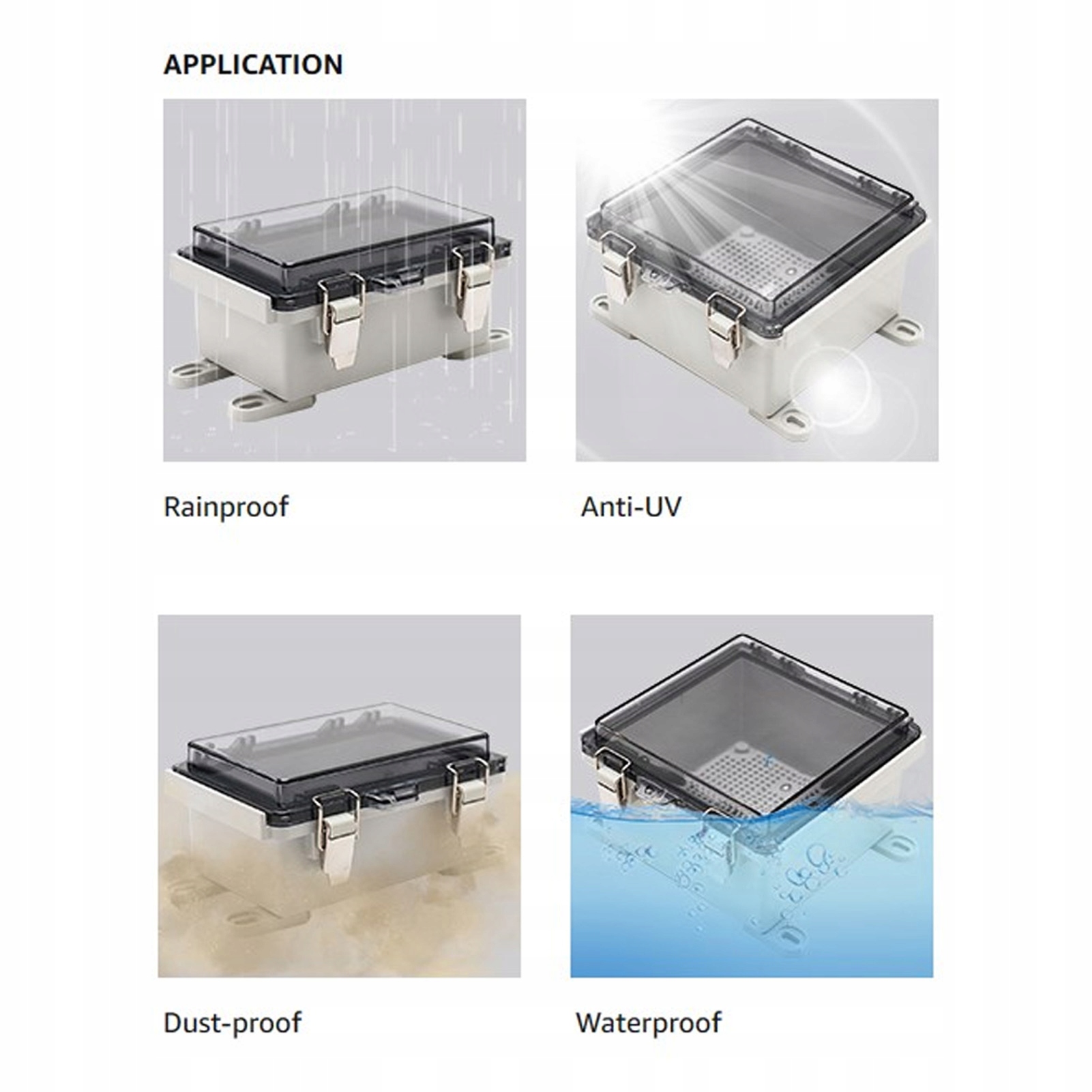 1. РЕЙТИНГ IP67: Эта электрическая коробка имеет степень защиты IP67, эффективно защищает от ветра, дождя, коррозии и ультрафиолетовых лучей, может широко использоваться внутри и снаружи помещений.