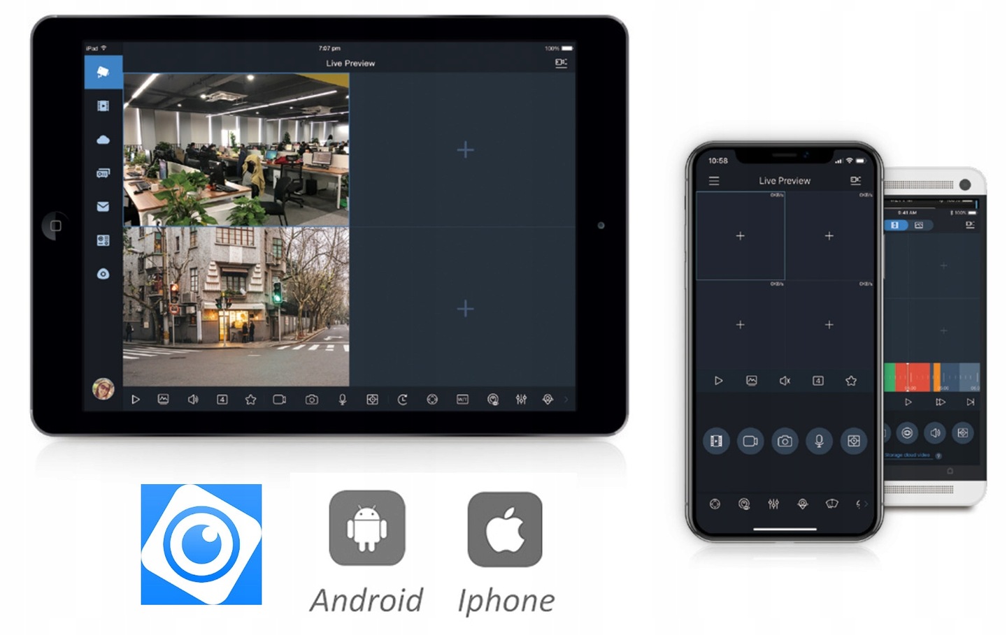 DMSS - это приложение, предназначенное для просмотра изображения с камер и для управления рекордерами Dahua на смартфонах и планшетах. Программа позволяет удаленной эксплуатации устройств (Recorders, IP -камеры), предварительный просмотр изображений, удаленное управление PTZ, поддержку аудио, съемки (снимки - Drops) или запись фильмов.