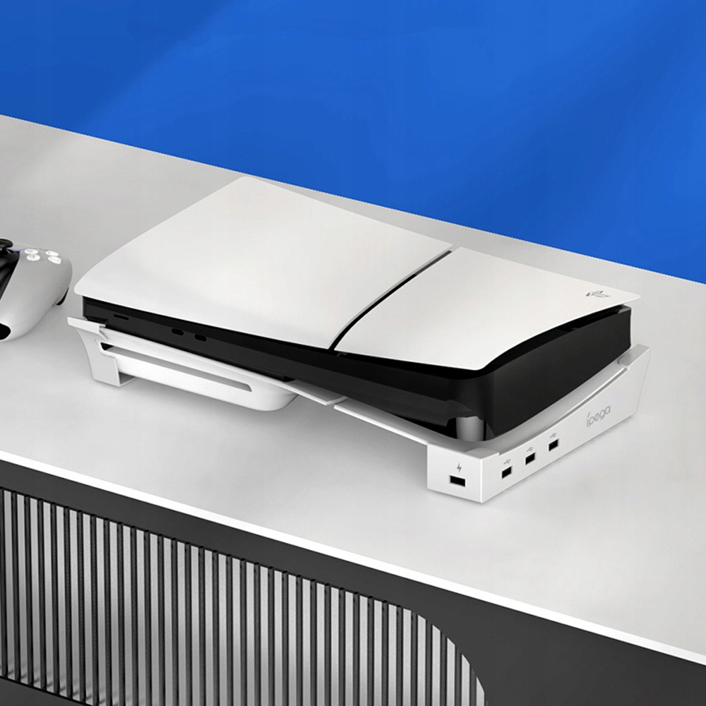 Если вы заядлый игрок и владелец консоли Sony PlayStation 5, эта подставка определенно будет полезна. Оснащенные 4 дополнительными USB -разъемами позволяют консоли расширяться с помощью этих слотов и подключать дополнительные устройства к консоли. Это позволяет подключать прокладки, наушники или даже мобильный телефон.