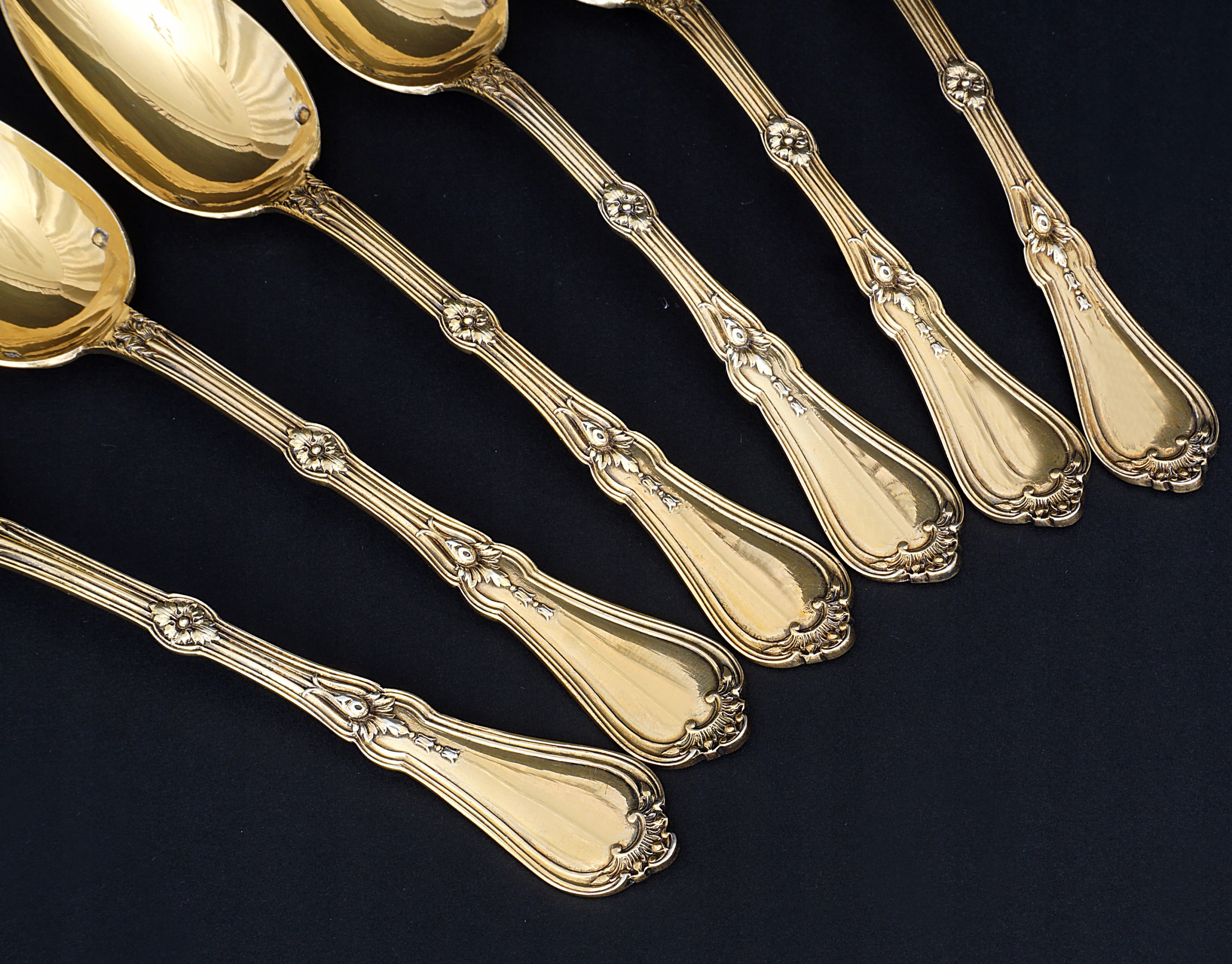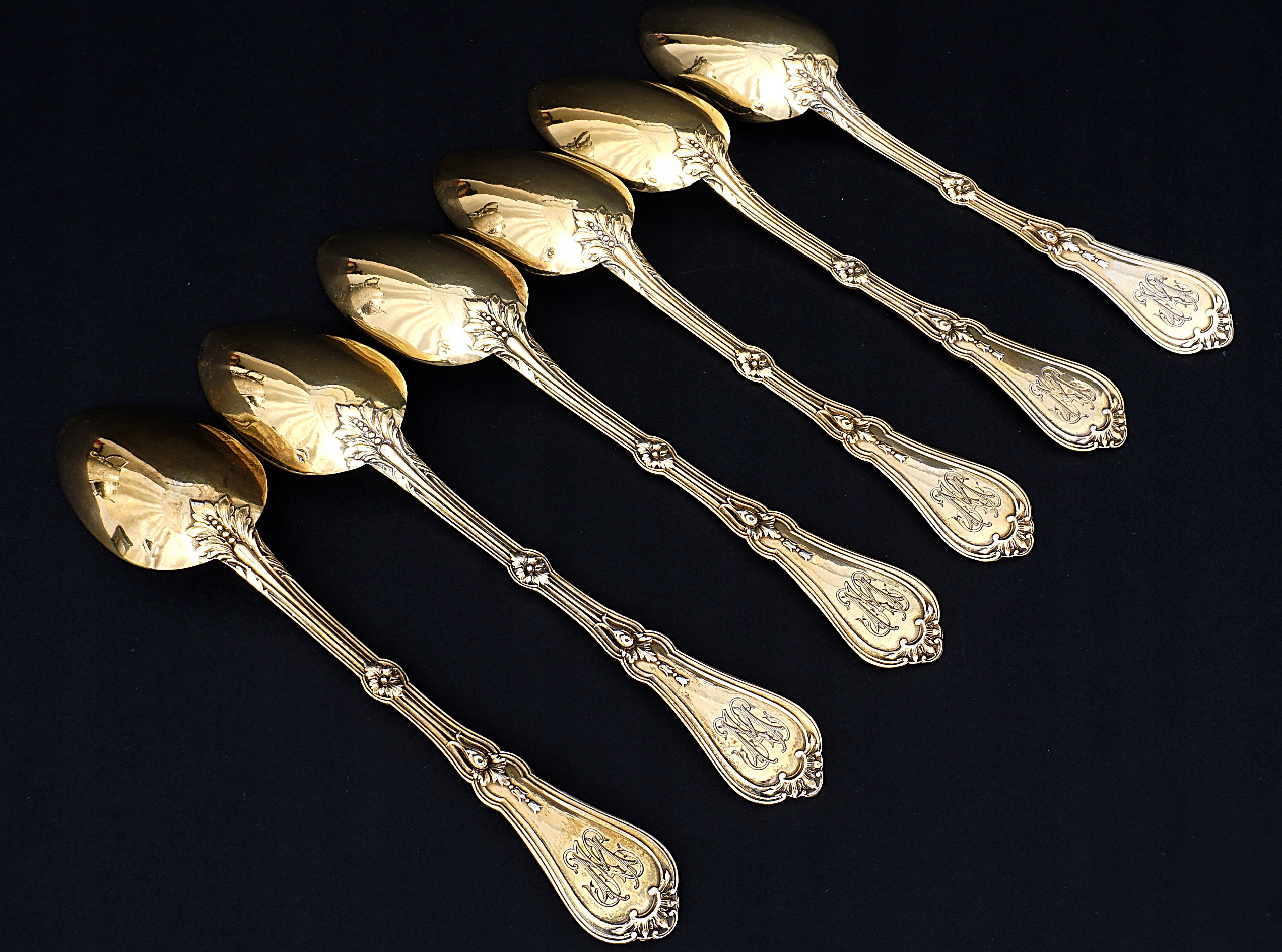 Ипполит Томас (1845-1855) - 6 Серебряная чайная ложка чайная ложка - позолоченная h1>