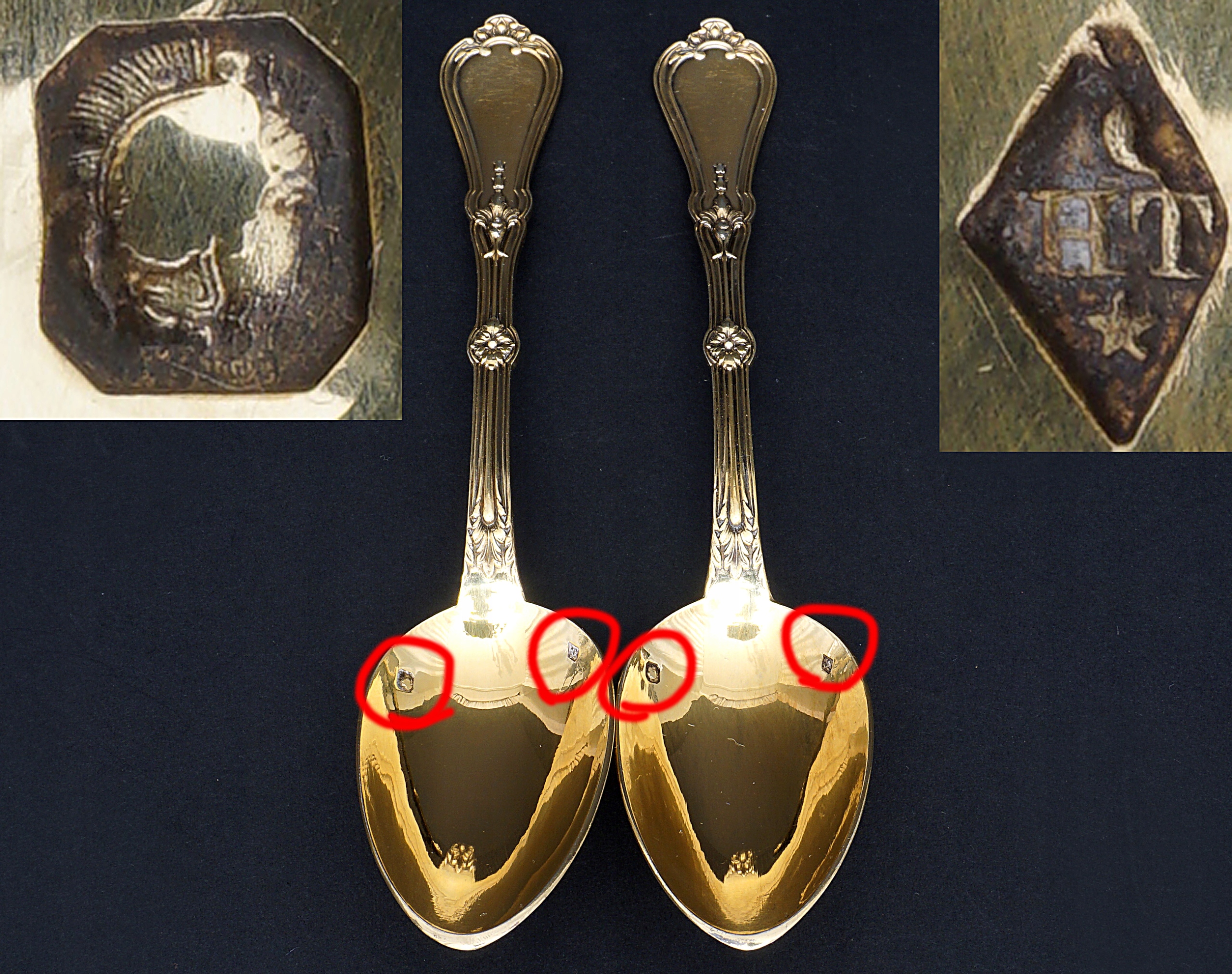 Ипполит Томас (1845-1855) - 6 Серебряная чайная чайная ложка - Золотая
