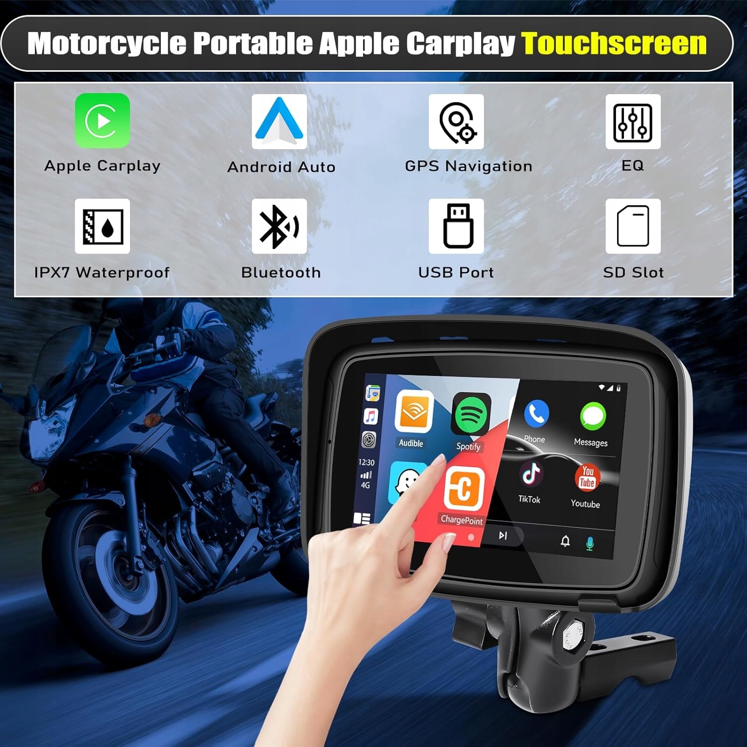 5-дюймовый HD-сенсорный экран: 65 000 цветов заполнены всем экраном для вашего комфорта. 5-дюймовый HD-дисплей с максимальной яркостью до 1000 заклепков, ярких и ослепительных, без страха перед горящим солнцем. Солнечный свет снаружи, дисплей всегда так ясен. Вам больше не нужно беспокоиться о том, что ваше навигационное устройство будет нагреться и использовать слишком много энергии. Беспроводная/проводная Apple CarPlay и автомобиль с Android: подключите телефон к этому портативному автомобильному радио через Bluetooth или USB -кабель, чтобы использовать Apple CarPlay и автомобиль Android. Вы можете получить доступ к большинству телефонных функций, таких как навигация, с телефона во время вождения. Вы также можете использовать Siri или Google Assistant для управления экраном CarPlay. Легко установка, подключите и воспроизводите: этот портативный монитор CarPlay подходит для всех мотоциклов, и, если необходимо, его можно установить на другие транспортные средства, просто включите его. Он оснащен монтажным набором и инструментами, которые обеспечивают стабильность. Встроенная антенна с высокой чувствительностью обеспечивает более быстрое расположение и реакцию.