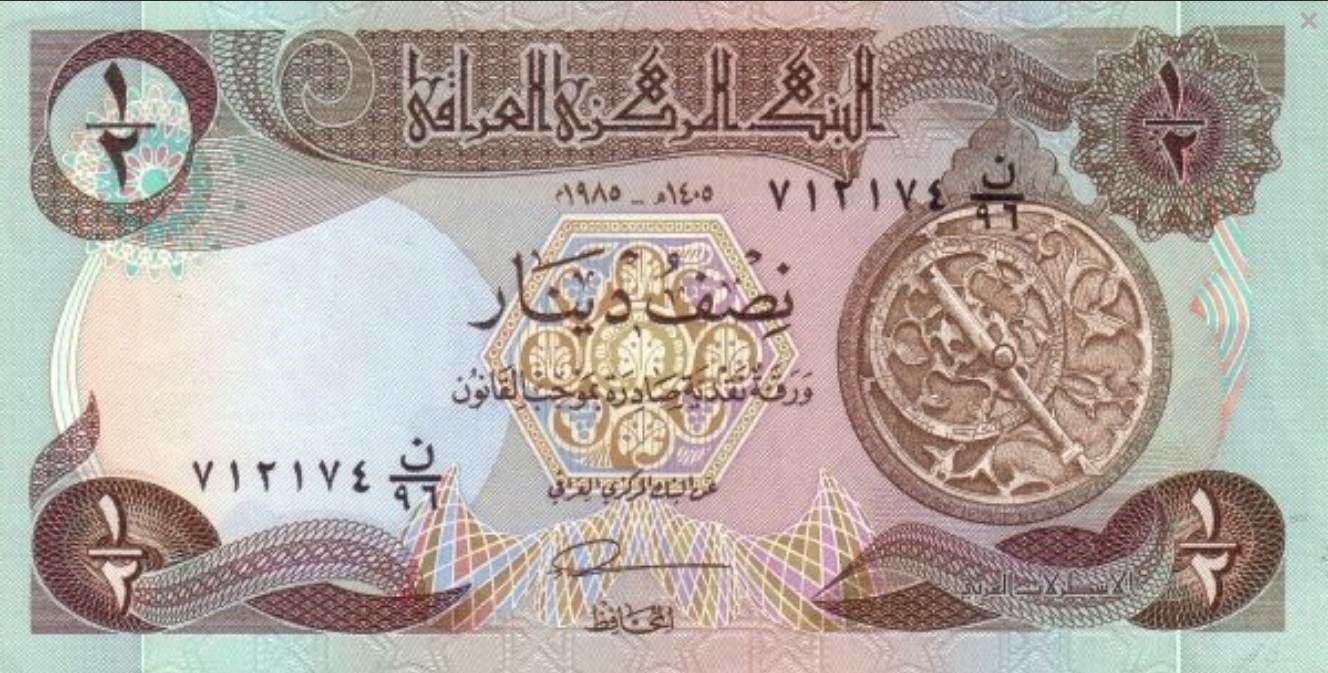 Ирак 1/2 Динара Вавилонская башня 1985 P-68A.2
