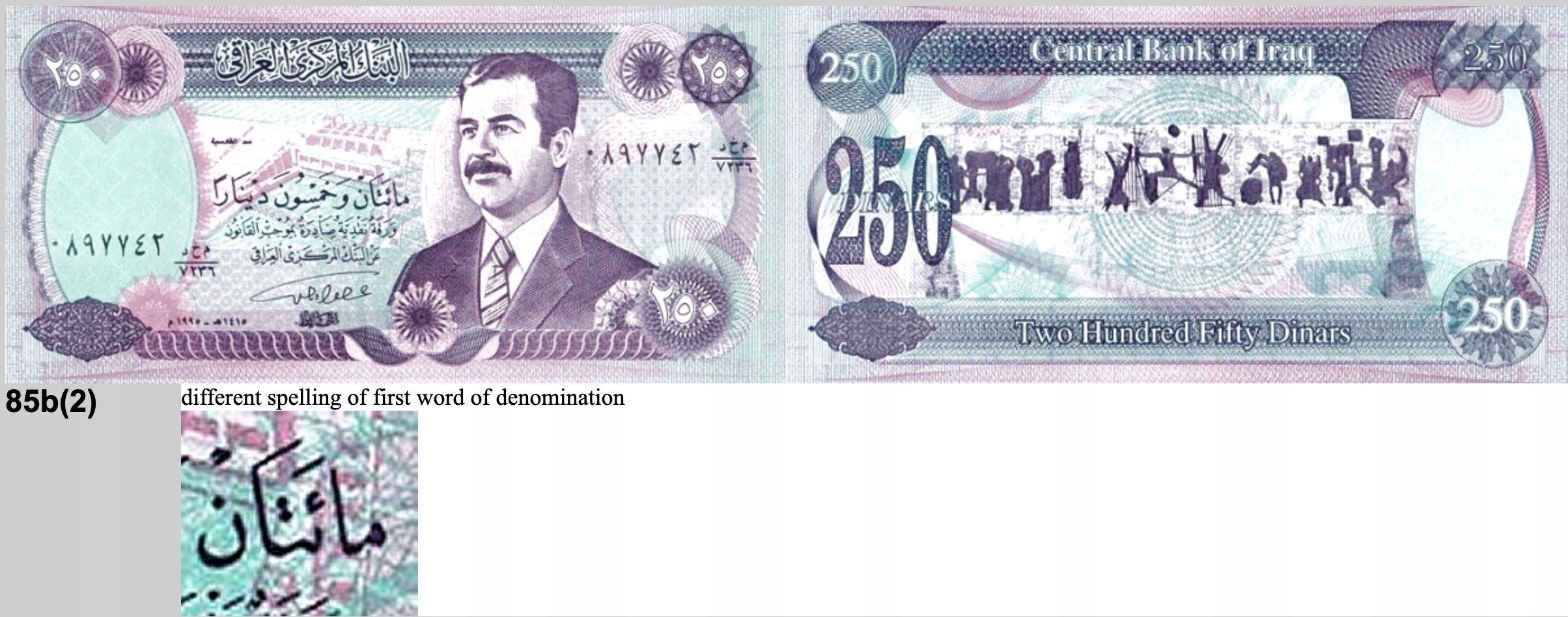 Ирак 250 Динар 1995 P-85B2 UNC SADDAM HUSAJN