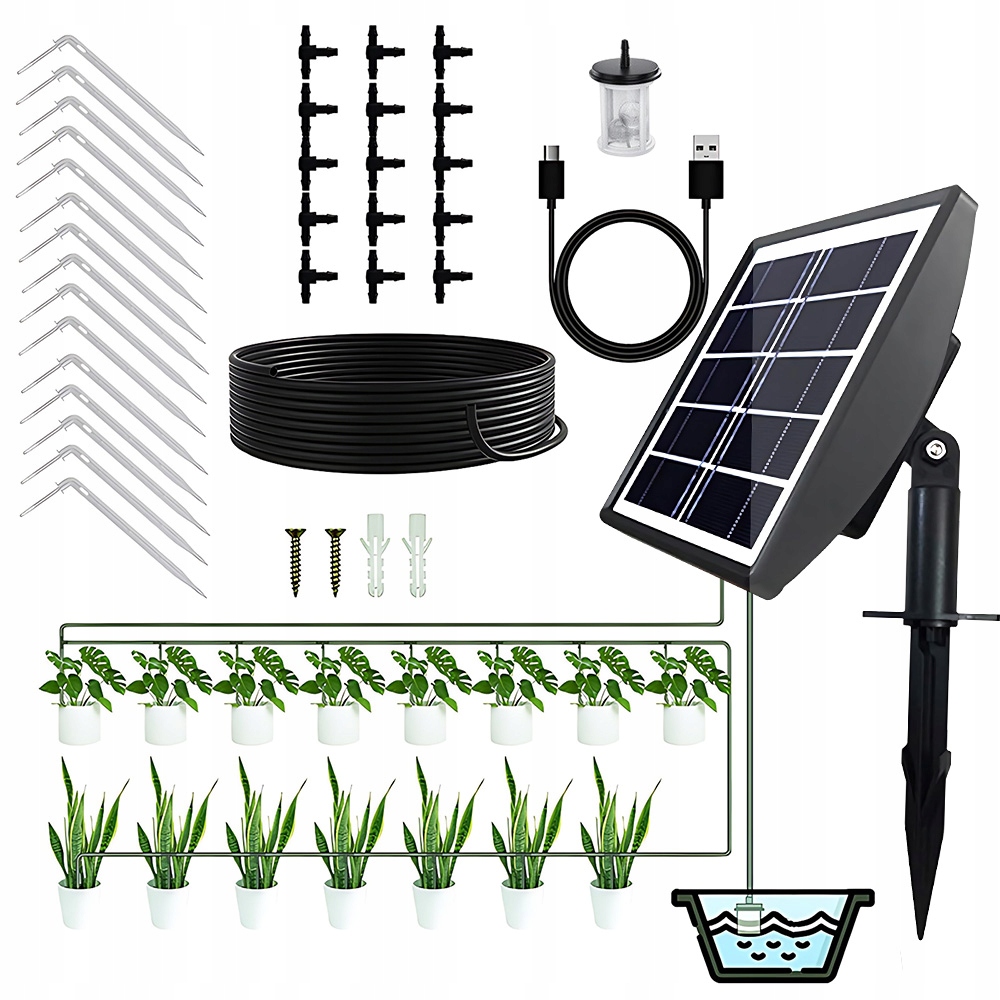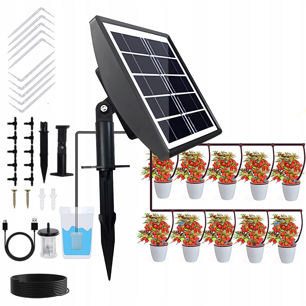 💧💧Комплект солнечной системы капельного орошения с таймером, 15-метровая солнечная автоматическая система орошения, уличная система автополива для полива овощных растений на садовом балконе 💧💧